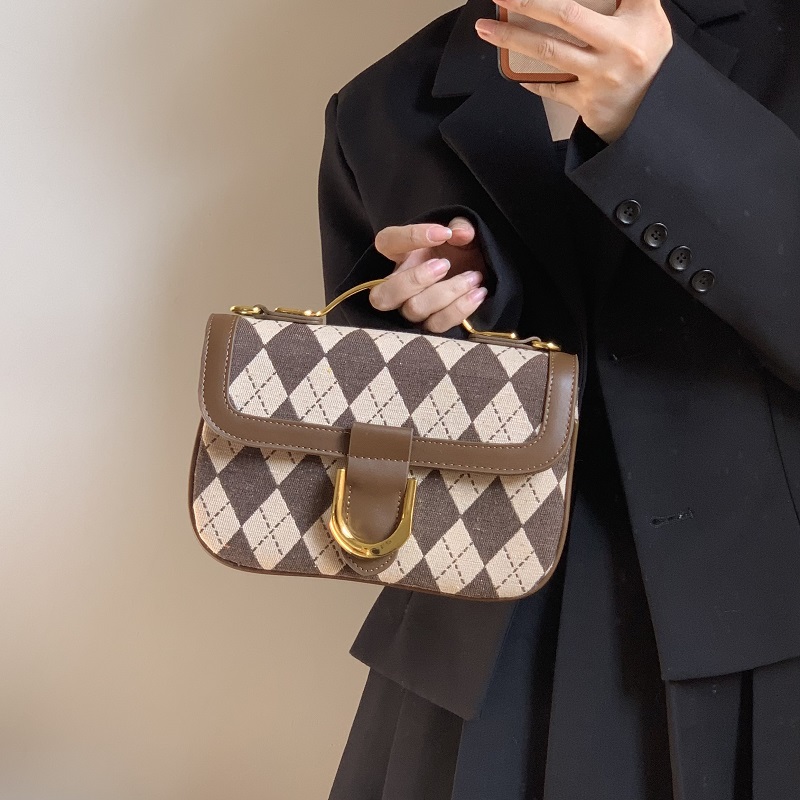 Texture: fabricClosing method: cover typePattern: PlaidInternal structure: card slot zipper pocketColor classification: light brown, black