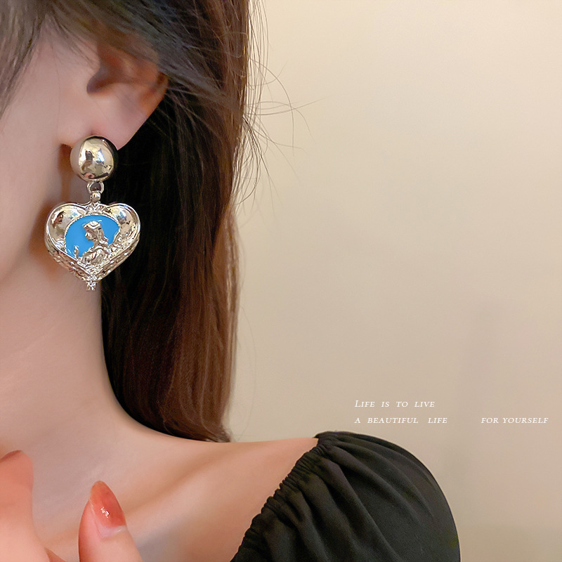 Product information:Material: gold-platedStyle: Women'sShape: Heart shapeTreatment process: dripping oilColor: Silver Needle BluePackage:Gold-plated earrings X1