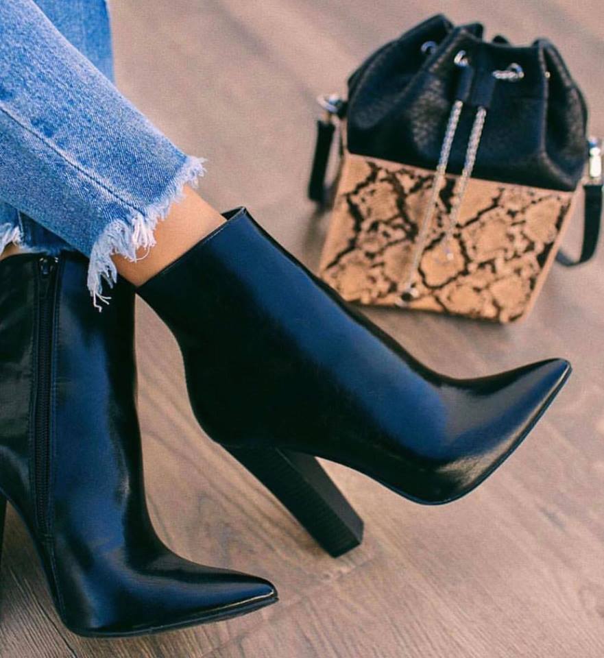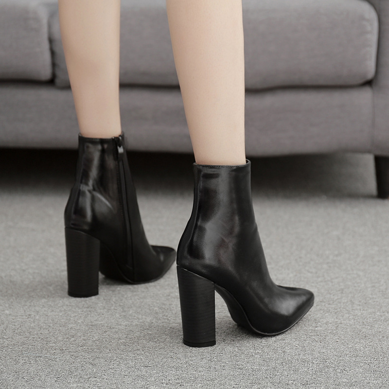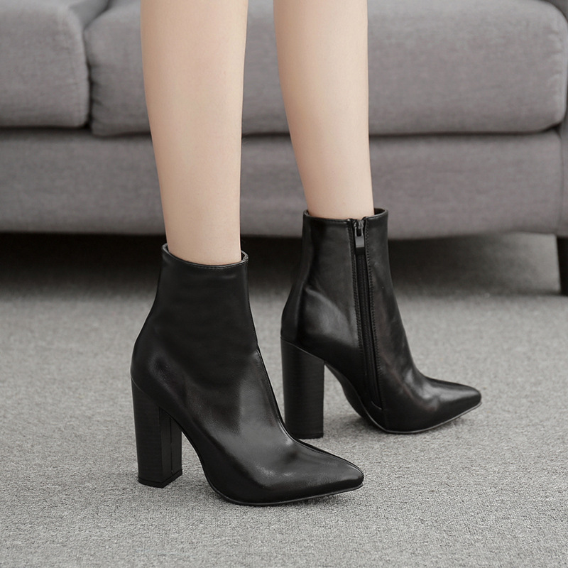 Women's boots with thick wood grain heels