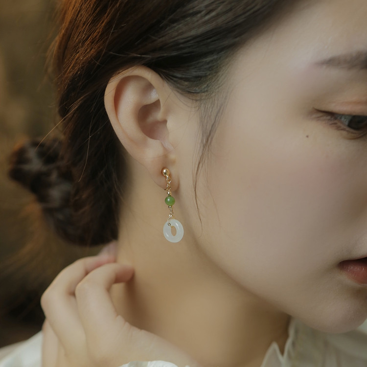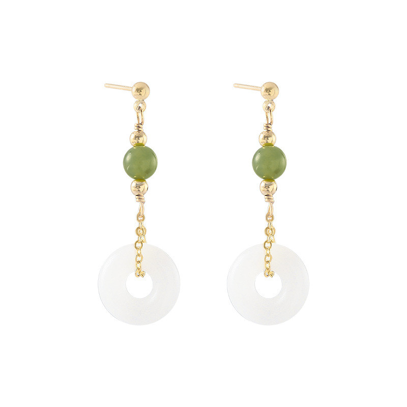 Material:Jade, 14k goldStyle:Fashion minimalistFeatures:Peaceful claspColour:White Jade Stud Earrings
