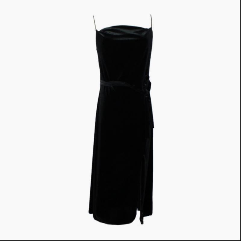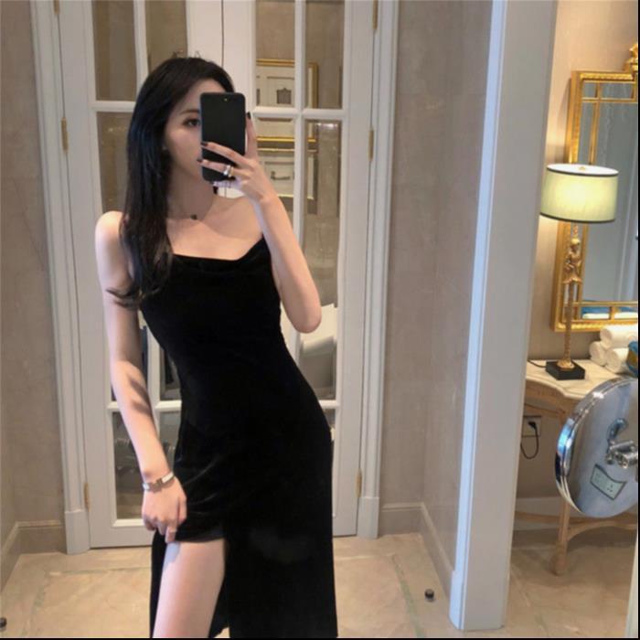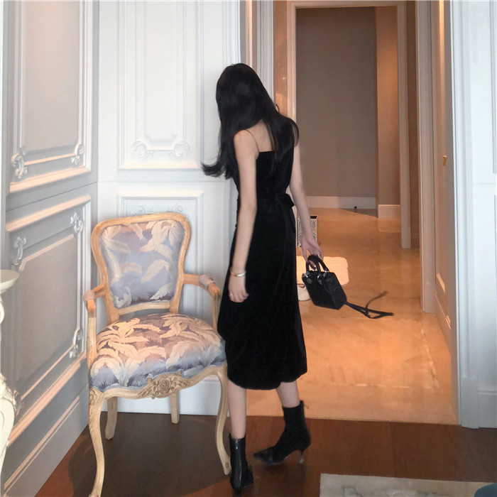 Product information:Skirt length: mid-length skirtSleeve: SleevelessFabric name: OtherPattern: OtherProcess: OtherColour: BlackSize: S, M, L, XLLength 96 Bust 80 Waist 73 Swing Tail 128Length 97 Bust 84 Waist 77 Swing Tail 132