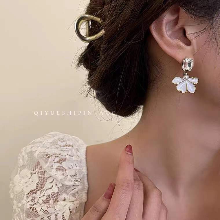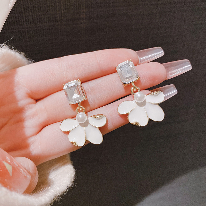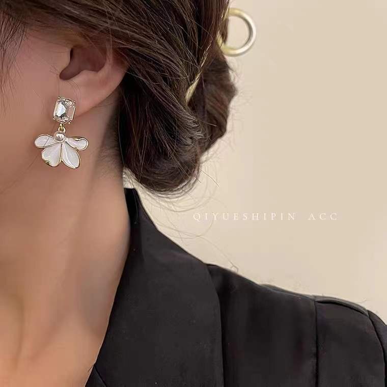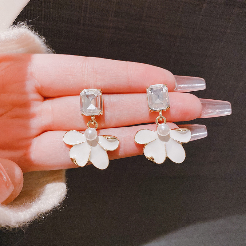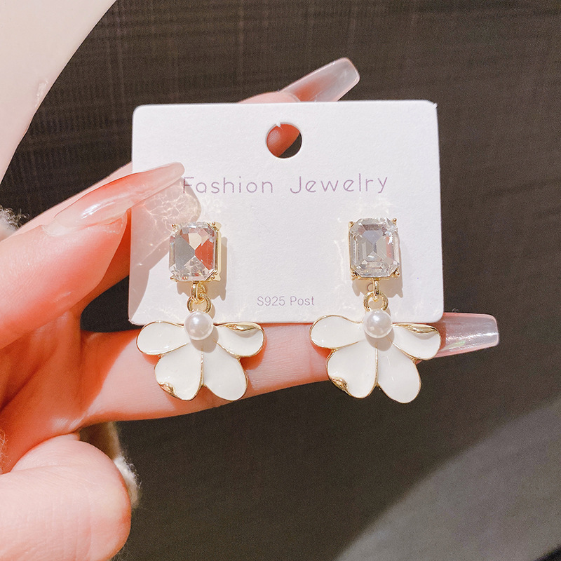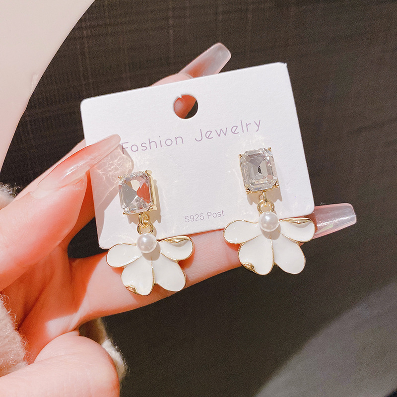 Sterling Silver Needle Retro Elegant Dripping Oil Petal Stud Earrings