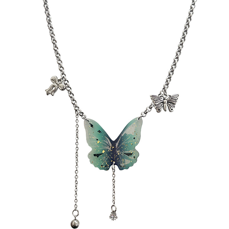 Color: green butterfly tassel necklace
