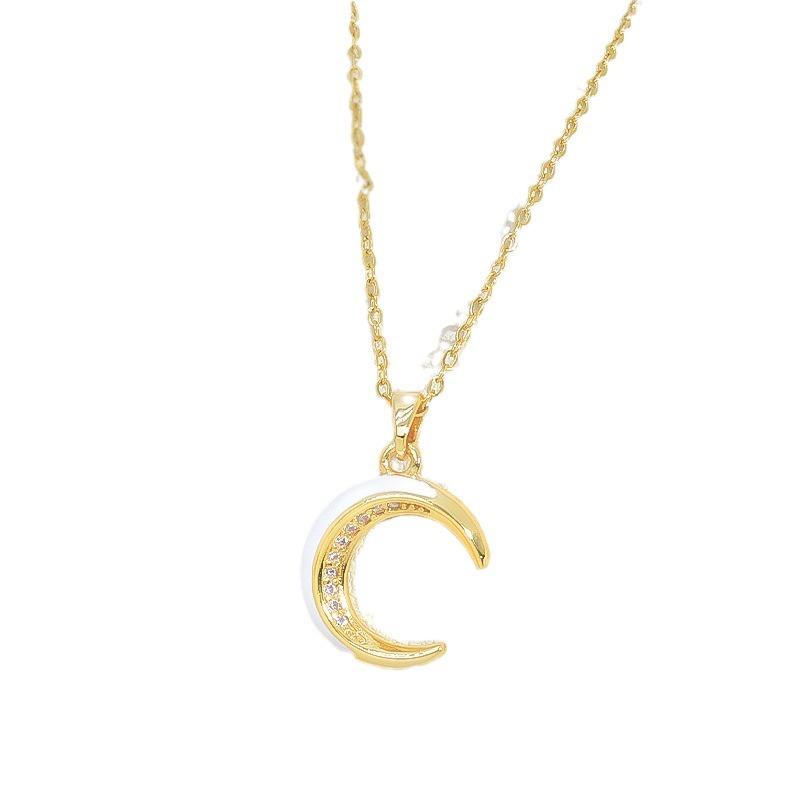 Product information:Treatment Process: inlaid zircon Color: Gold Applicable population: Female Pendant material: Copper Chain style: cross chain Material: titanium steel Popular element: Moon Style: cold wind
