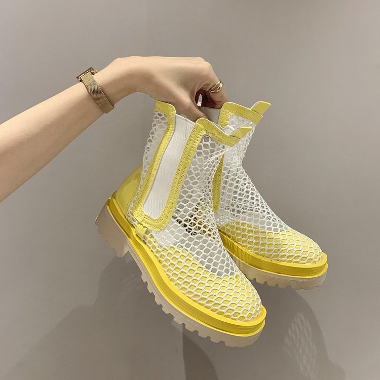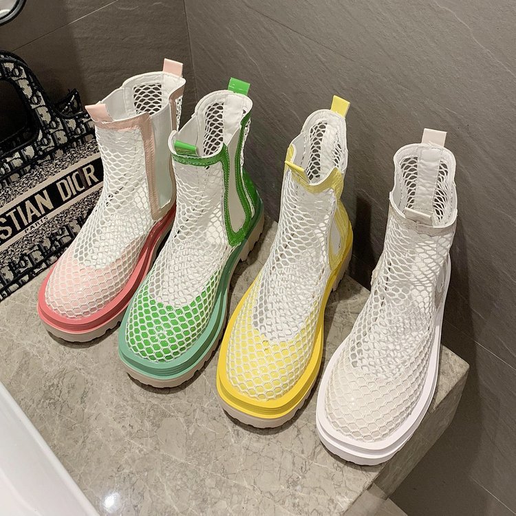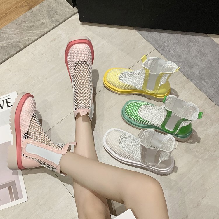 Upper Material: Artificial PUToe shape: round headSole material: EVAHeel height: flat heelColor: white, yellow, green, pink