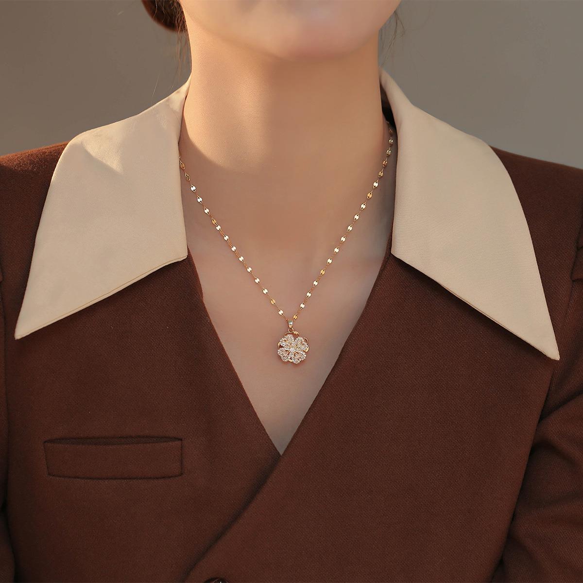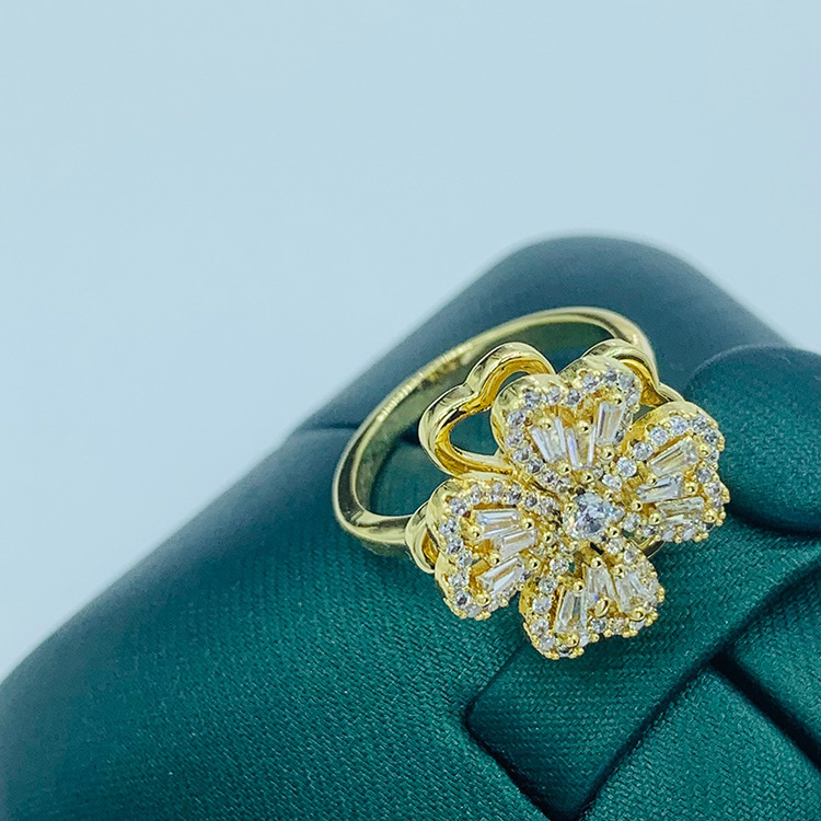 Color: X105 rotating four-leaf flower necklace gold, X106 rotating four-leaf flower necklace silver, J021 rotating four-leaf clover ring Gold, J022 rotating four-leaf clover ring Silver