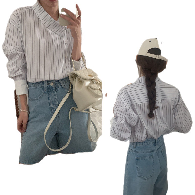 Product information:Pattern: stripes Fabric name: Polyester Color: white, navy blue Sleeve type: shirt sleeve Size: free size Version: Loose Style type: temperament commute Sleeve length: extra long sleeves