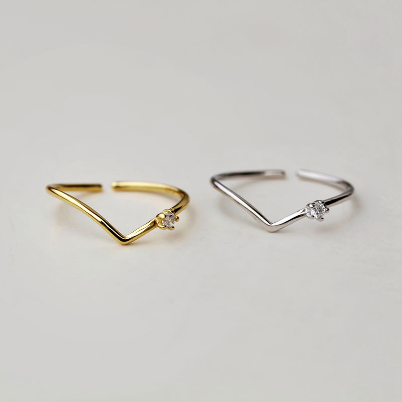 Color: V-shaped inlaid zirconium open ring-white gold, V-shaped inlaid zirconium open ring-gold