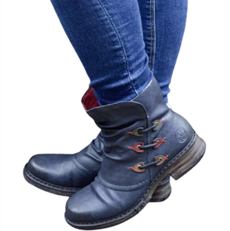 Upper Material: Artificial PUSole Material: RubberApplicable gender: femaleStyle: European and AmericanToe shape: round headHeel shape: thick heelHeel height: low heel (1-3CM)Popular boots: short bootsPopular elements: car suture
