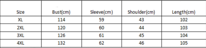 Size: XL, 2XL, 3XL, 4XL