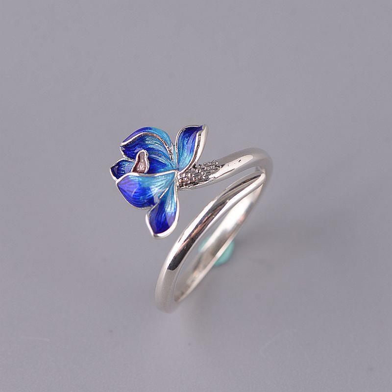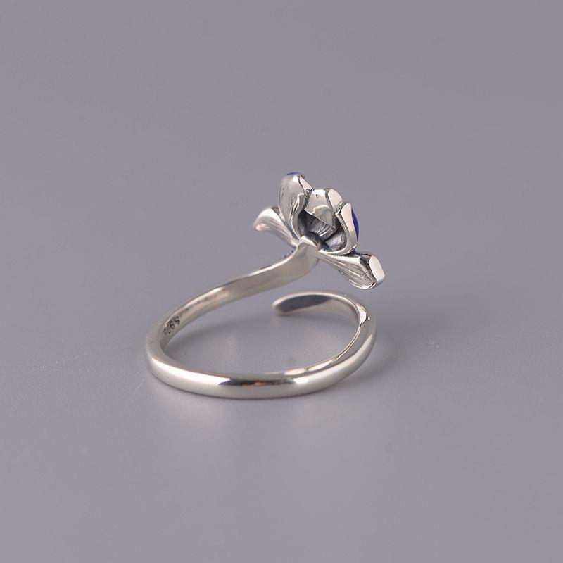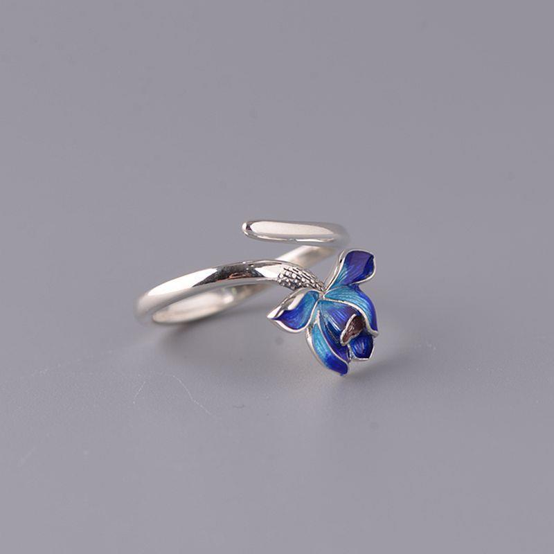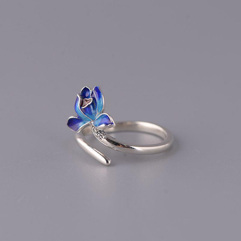 New Retro Women's Fashion Cloisonne Burnt Blue Lotus Ring