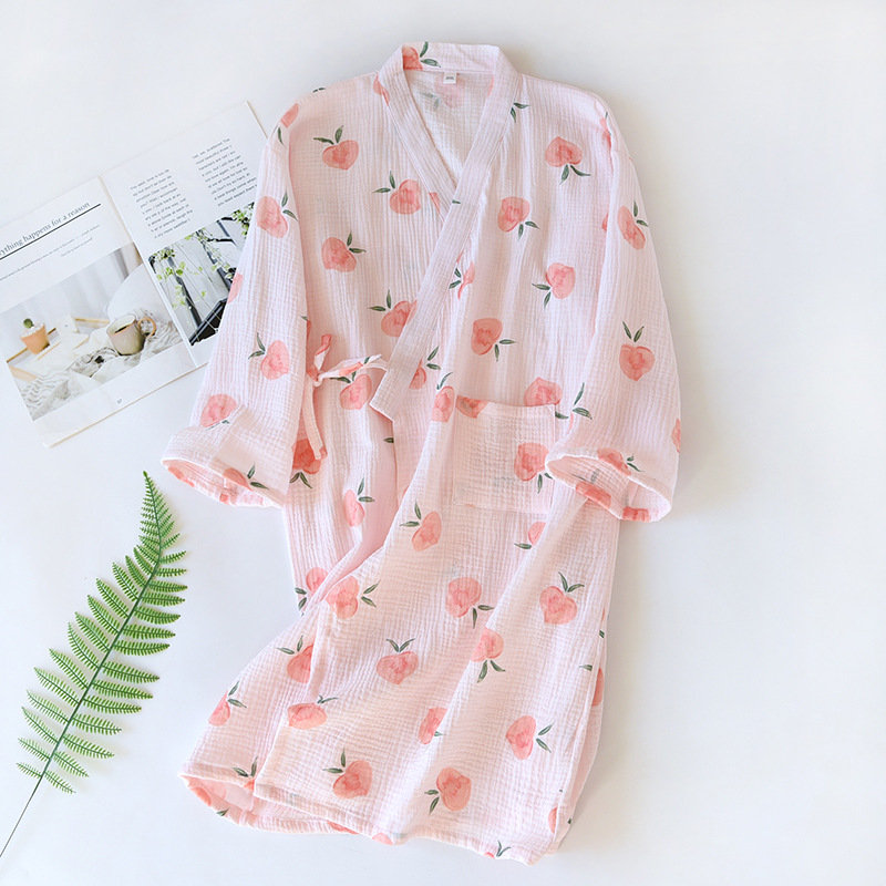 Color: crepe peach kimono robe-beige, crepe peach kimono robe-White, crepe peach kimono robe-pink