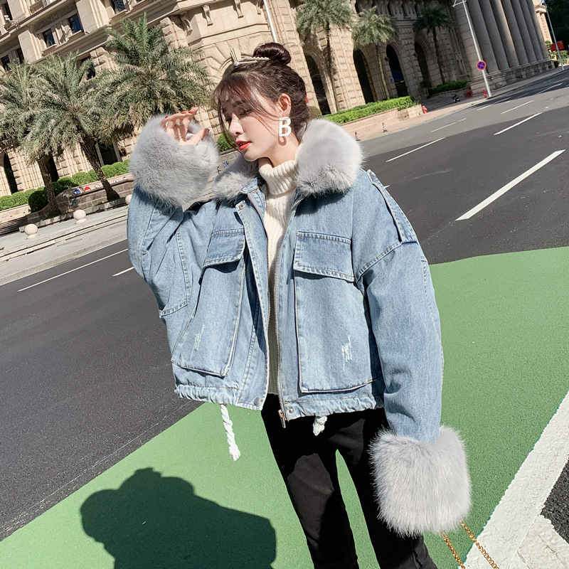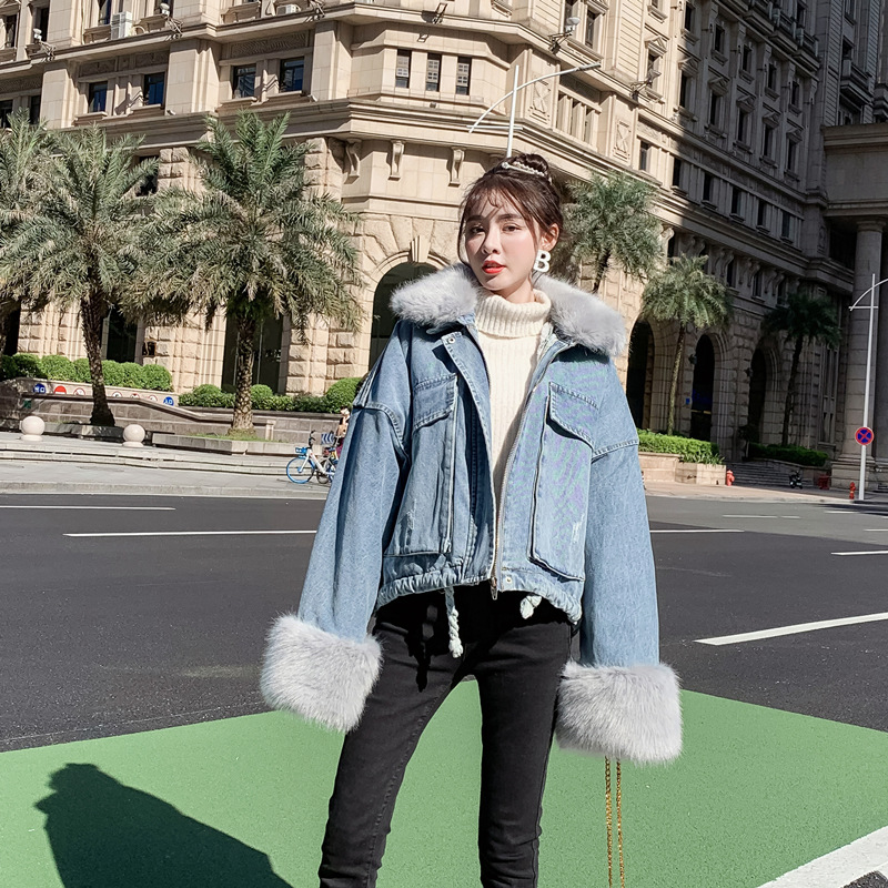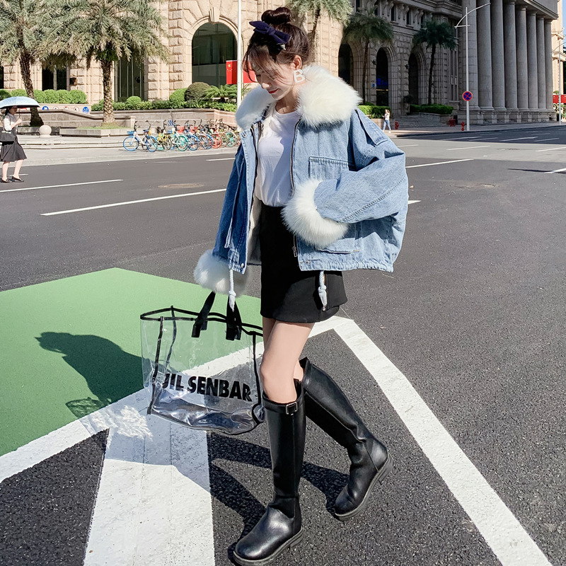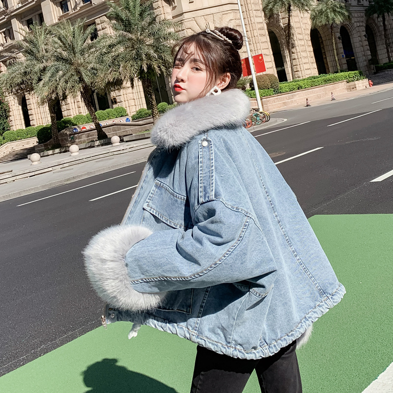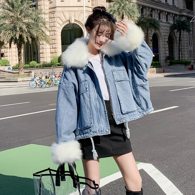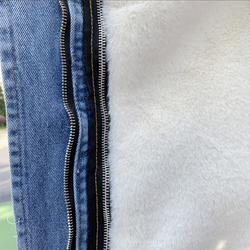 Detachable rabbit fur two-piece denim coat