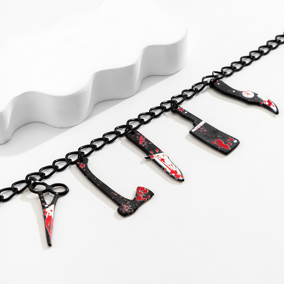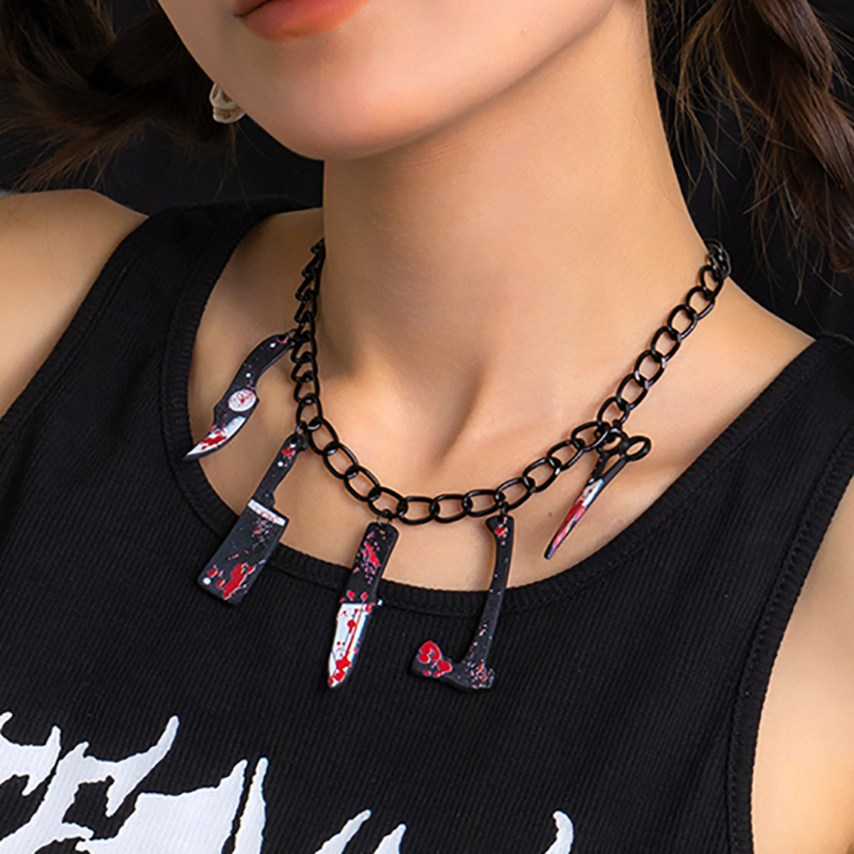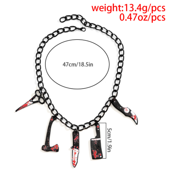 Product Details:Material: AlloyTreatment process: electroplatingStyle: halloweenShape: geometricCircumference: 31cm (inclusive)-40cm (inclusive)Color: Black 5369Package Contents:Necklace X1
