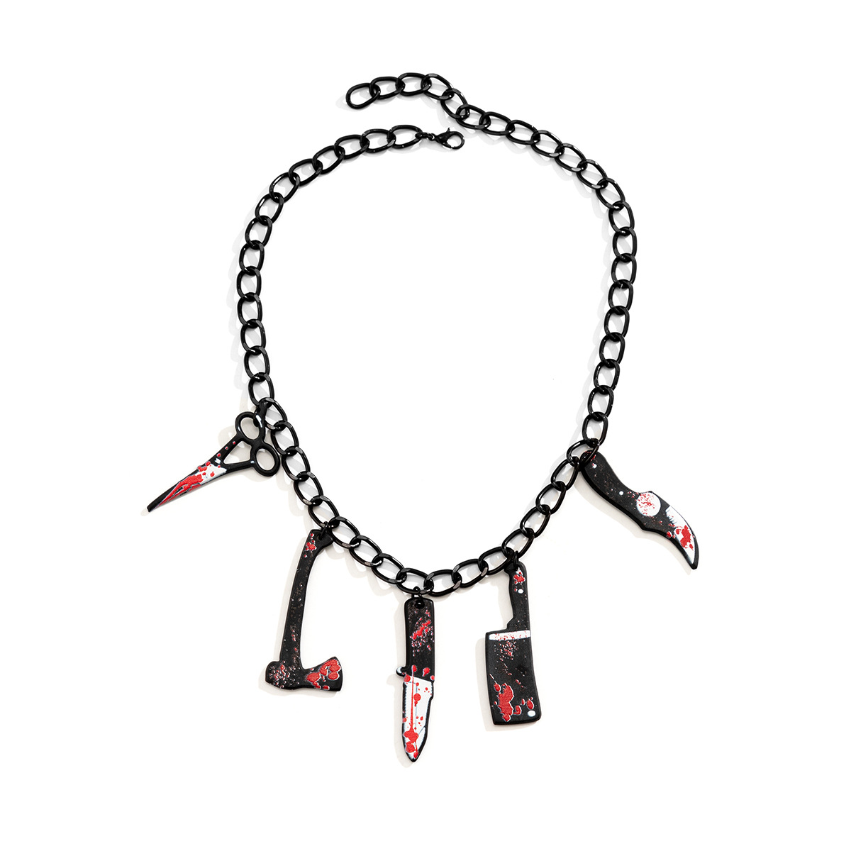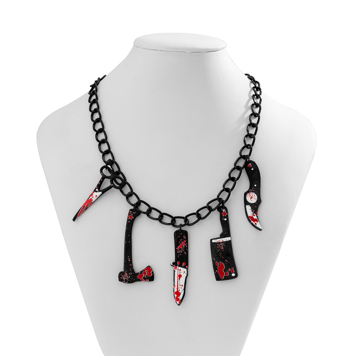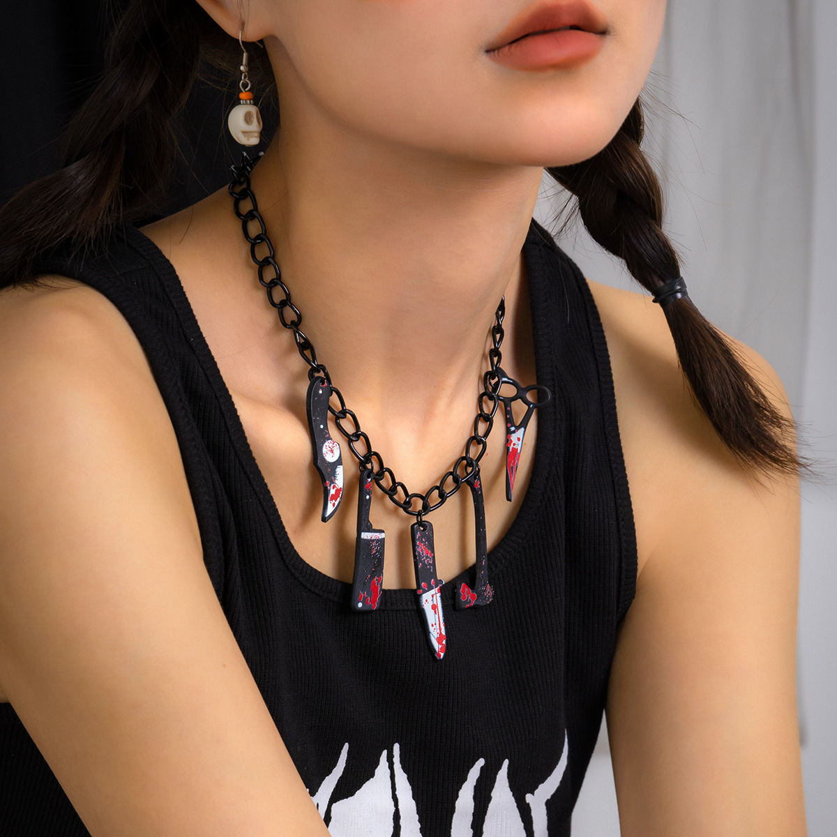 Product Details:Material: AlloyTreatment process: electroplatingStyle: halloweenShape: geometricCircumference: 31cm (inclusive)-40cm (inclusive)Color: Black 5369Package Contents:Necklace X1