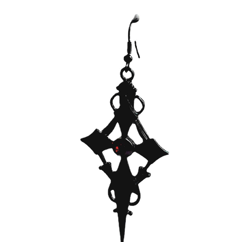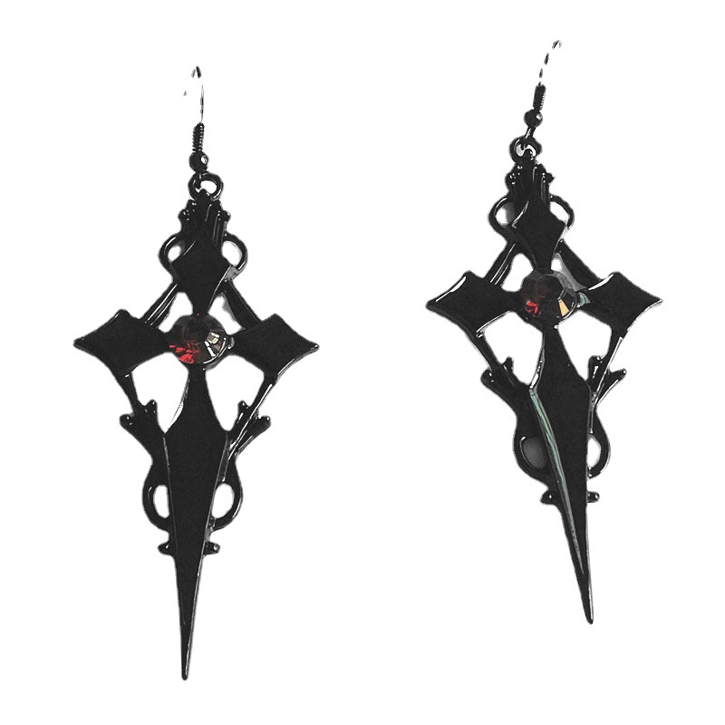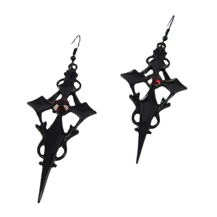 Product Information:Style: Women'sModeling: CrossTreatment process: baking varnishMaterial: AlloyStyle: Punk GothInlay material: alloy inlaid artificial gems/semi-precious stonesColour: Black