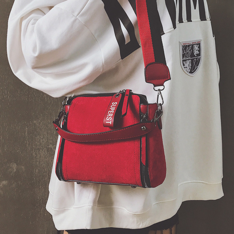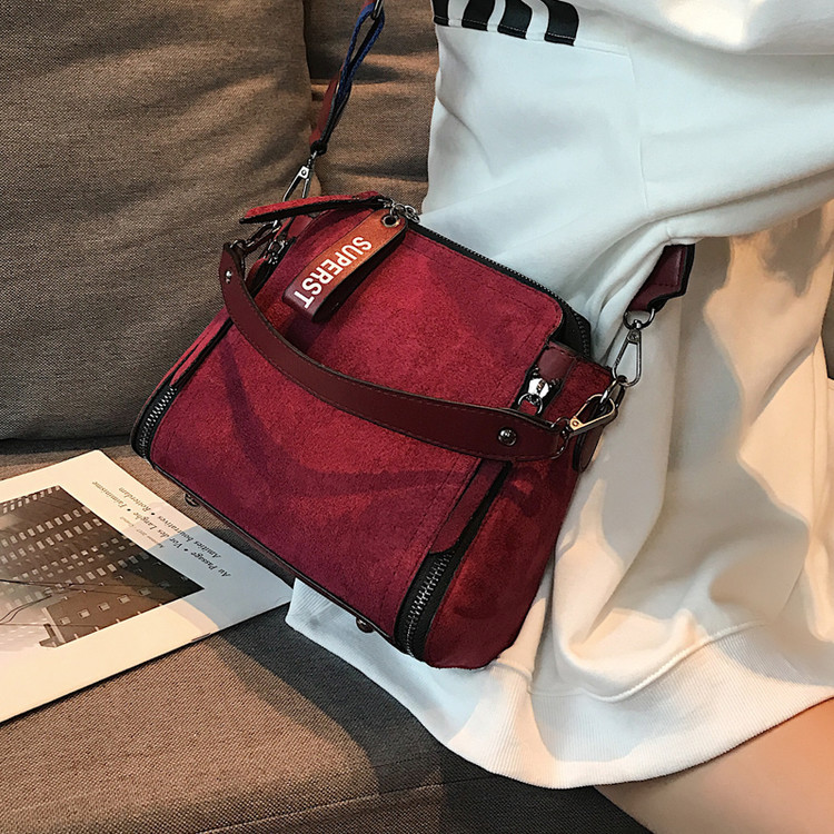 Double shoulder strap frosted velvet bucket bag