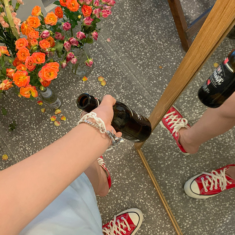 Color: One White Sweet Cool Bracelet, one Titanium Steel Bracelet, One Titanium Steel Stacked Wear Sweet Cool Bracelet