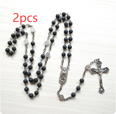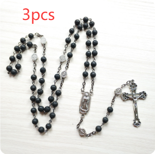 Product information:Beads; 6MMNet weight: 40.1gPendant: 19.cm Bead Chain Straightening: 40.cm Pulling: 80cmCross: 3.0 * 5.5cm Holy plaque: 1.5 * 3.2cm
