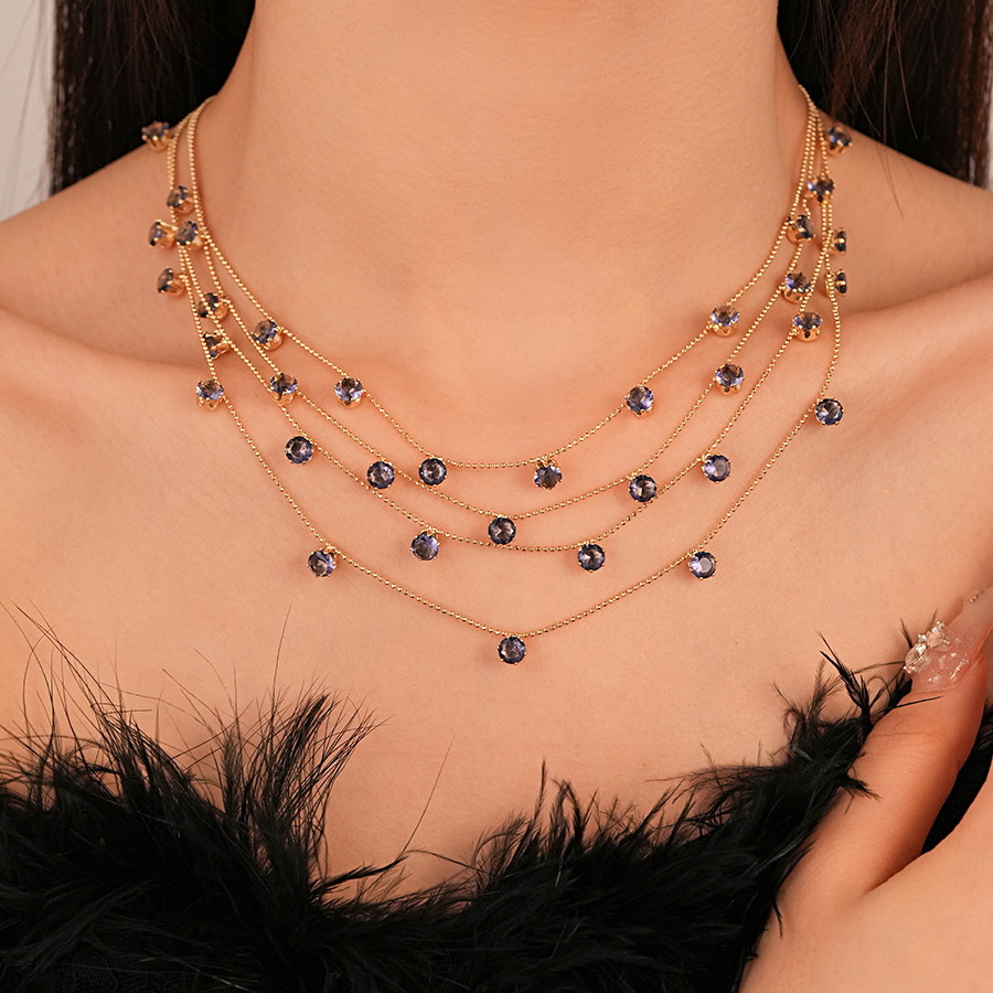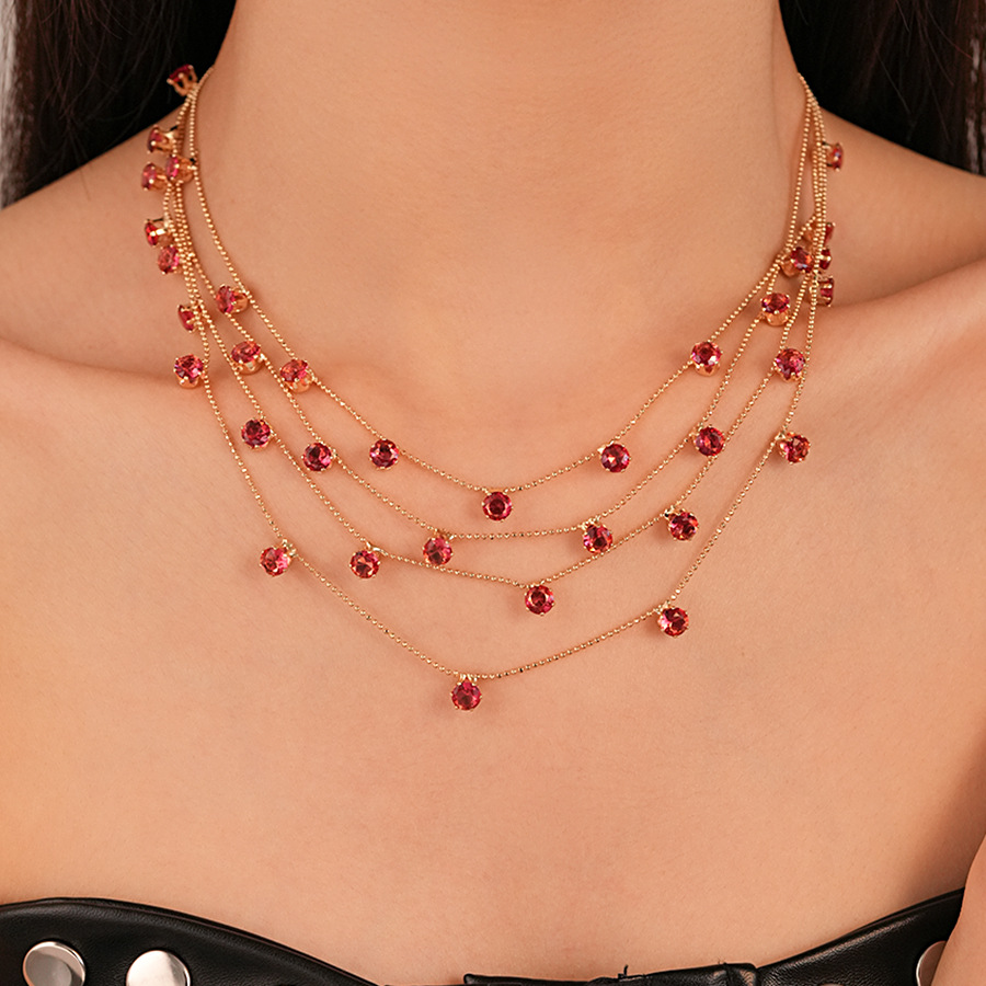 Color: 30# necklace-Golden-Black-round, 31# necklace-Golden-purple-round, 32# necklace-golden-red-round, 33# necklace-Golden-White-round, 34# necklace-Golden-Blue-round, 35# necklace-Golden-pink-Round