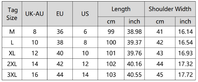 2. Please check the size chart carefully before you buy the item, if you don't know how to choose size, please contact our customer service.