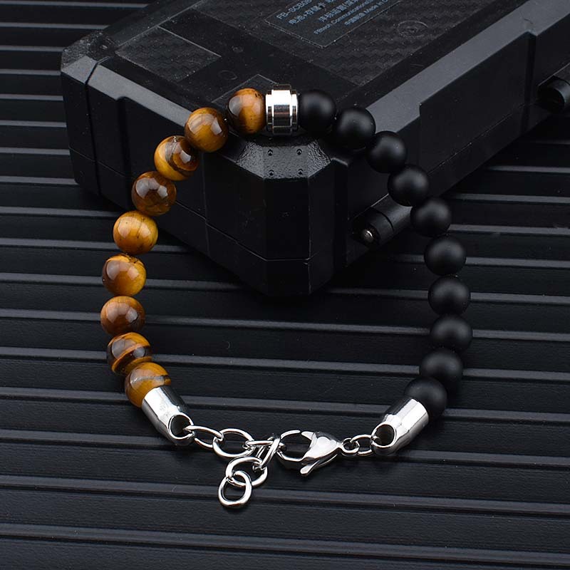 Stainless Steel Natural Stone Bracelets Bangle Men Tiger Eye Stone Bead Bracelet For Men Gift For Him Pulseras Hombre JS-04