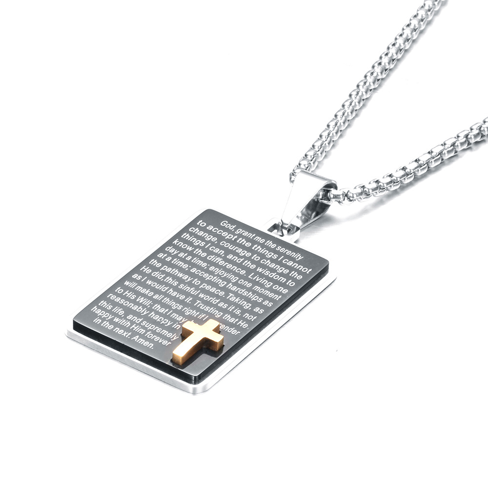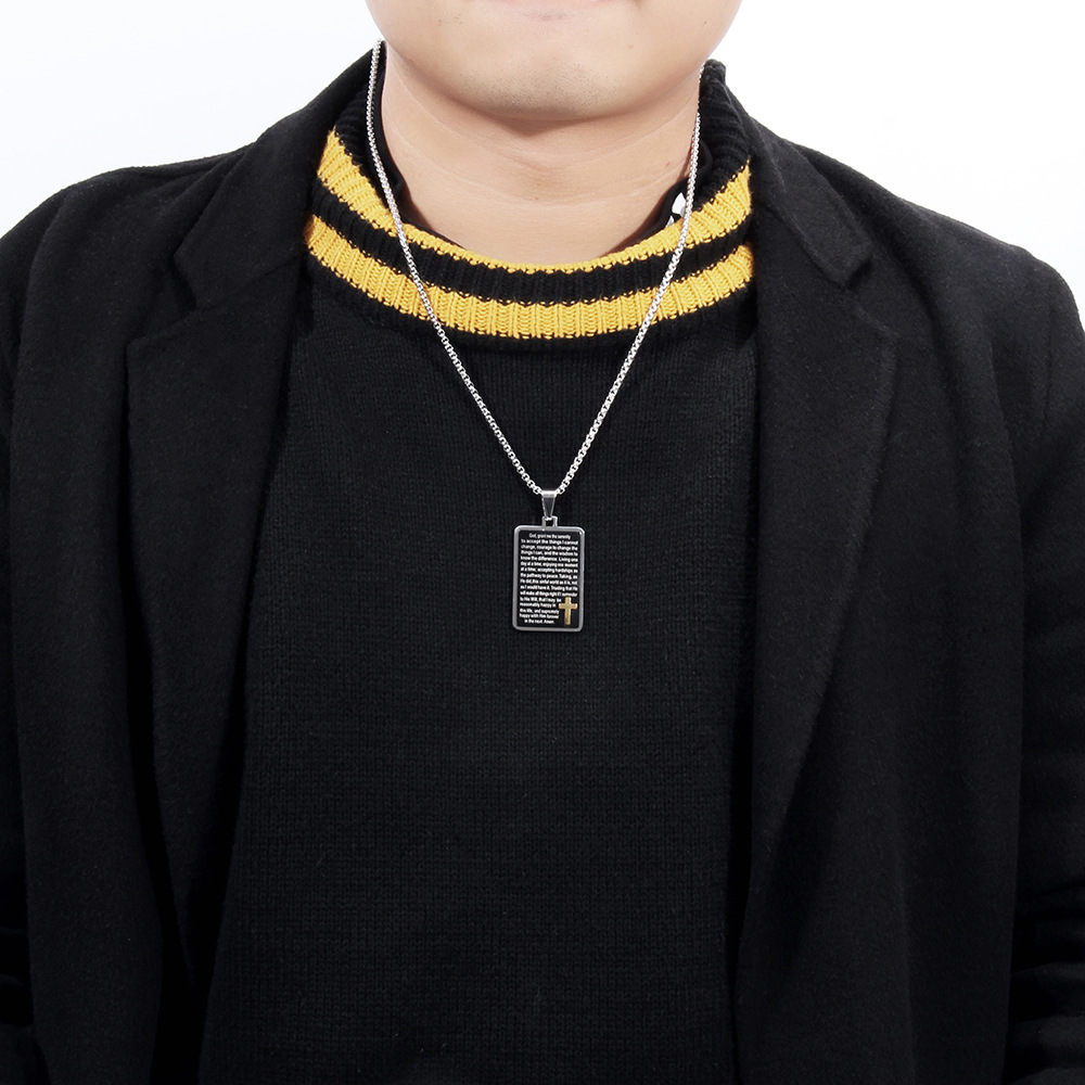 Simple Cross Pendant Retro Square Smeared Stainless Steel Necklace