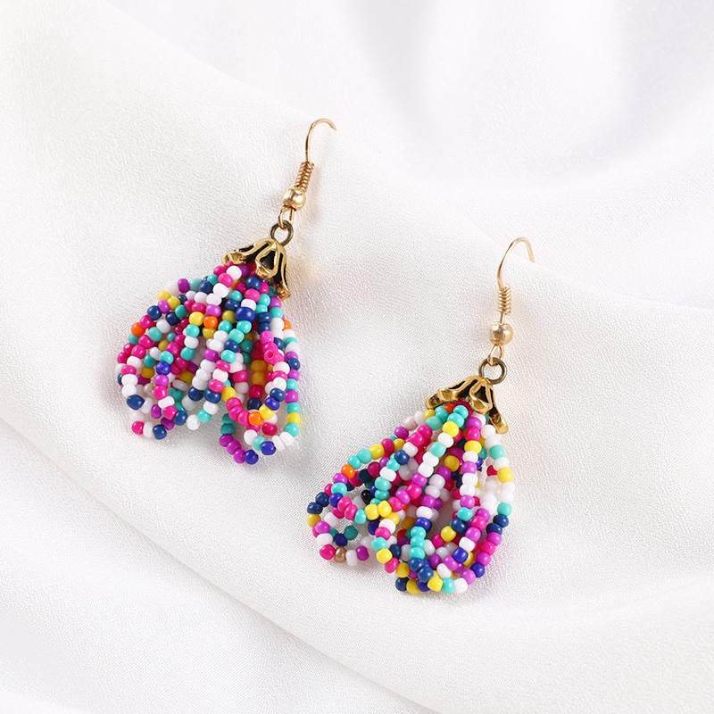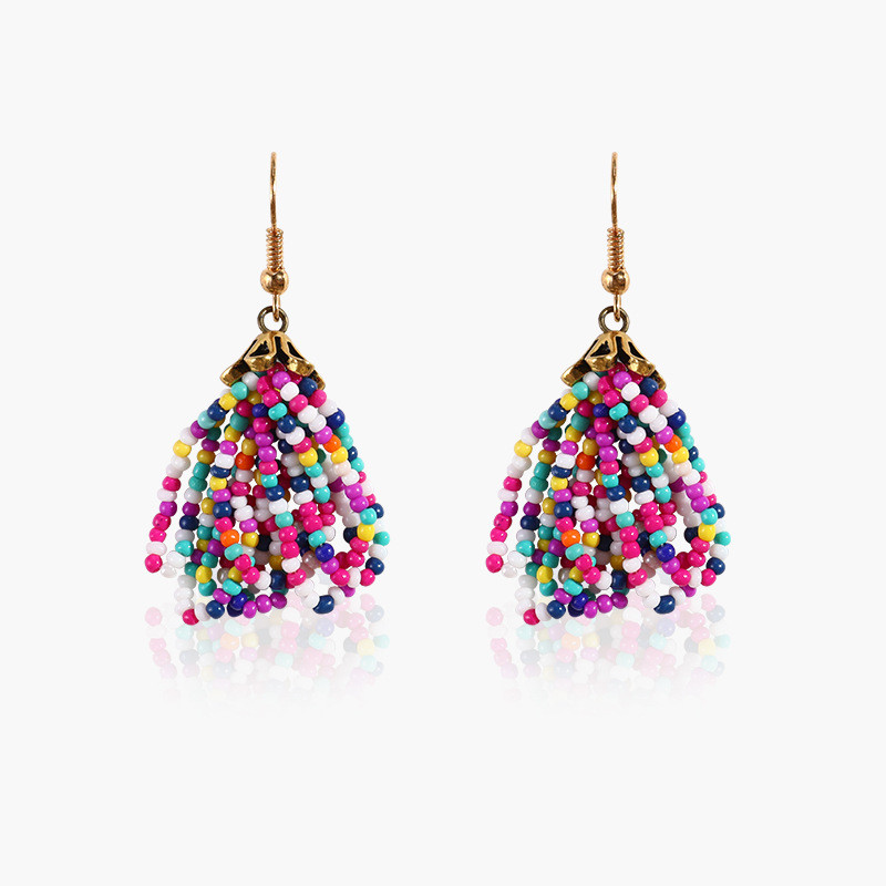 Product information:Material: plastic/resinStyle: European and AmericanStyle: Women'sStyle: FlowersInlaid material: not inlaidColor: handmade bead earringsPopular elements: tassels