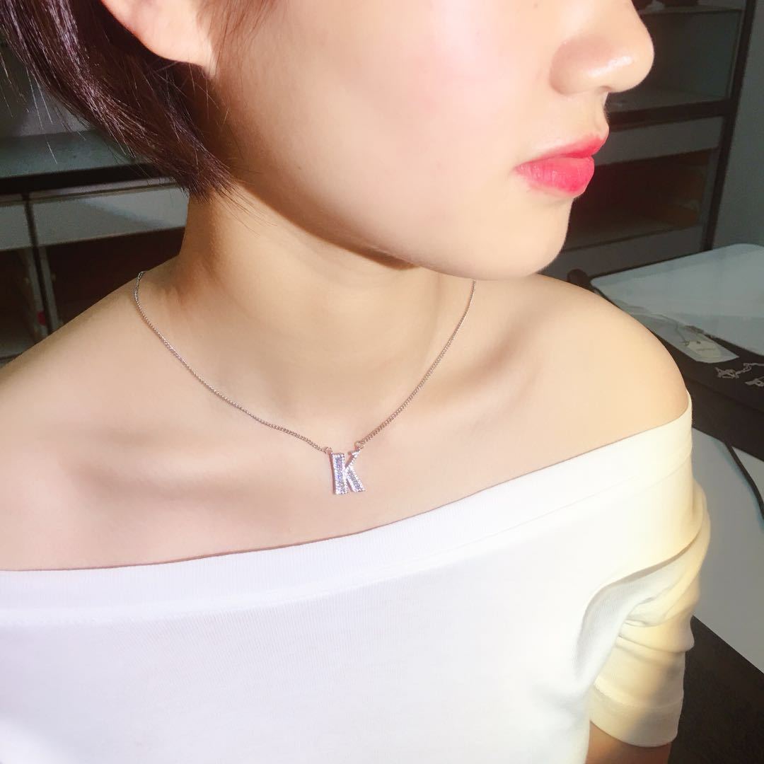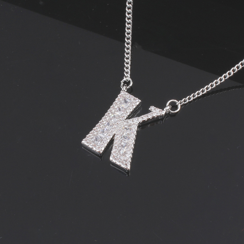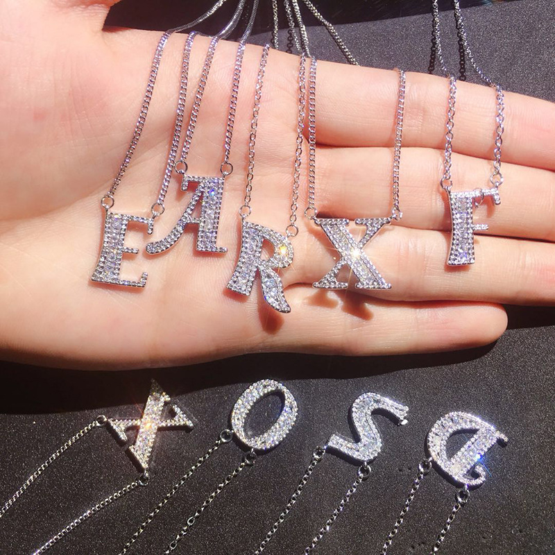 26 letter necklace female micro inlaid zircon copper clavicle chain DIY name pendant