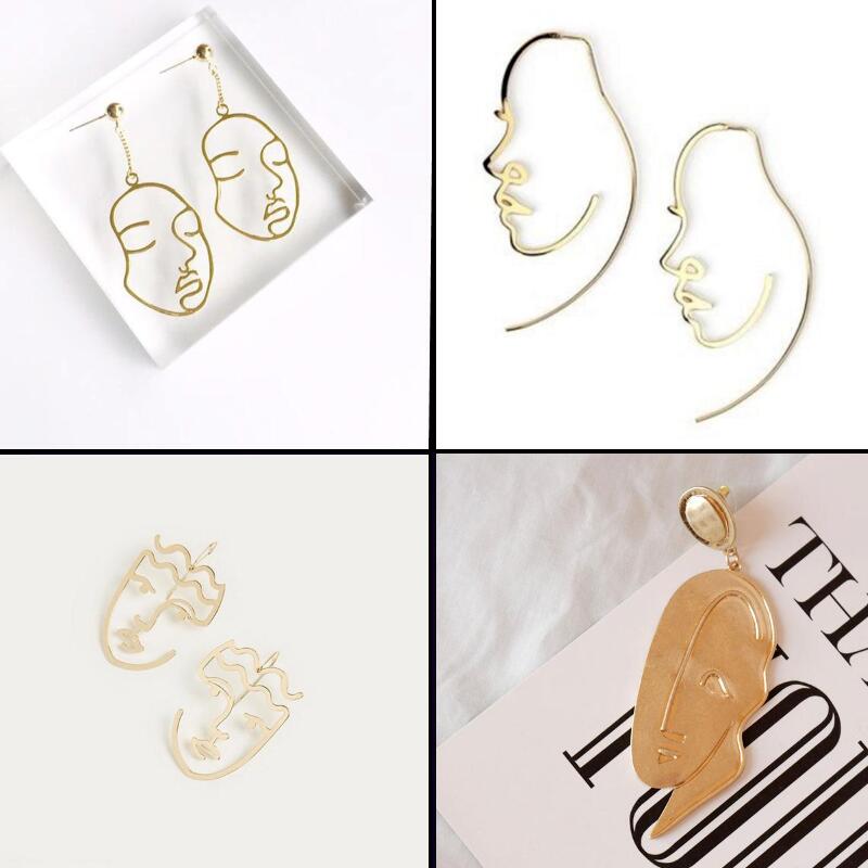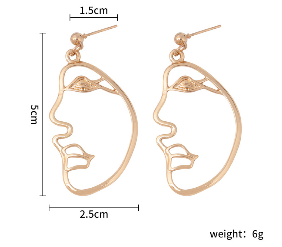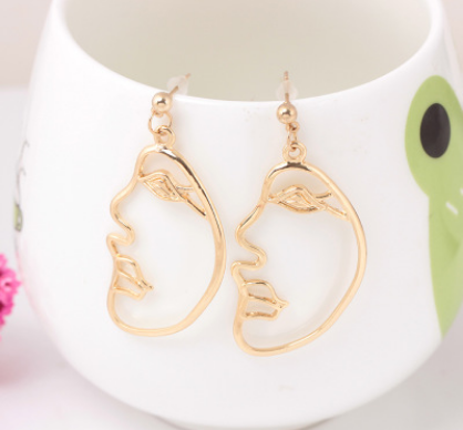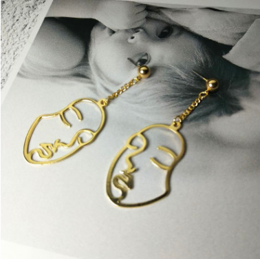 European and American retro simple abstract face pendant exaggerated atmosphere personality temperament long cold air earring earring girl