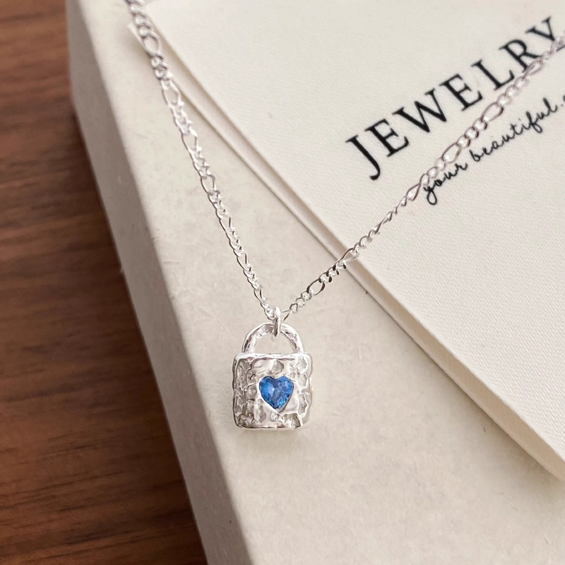 Simple Texture Blue Zircon Necklace For Women
