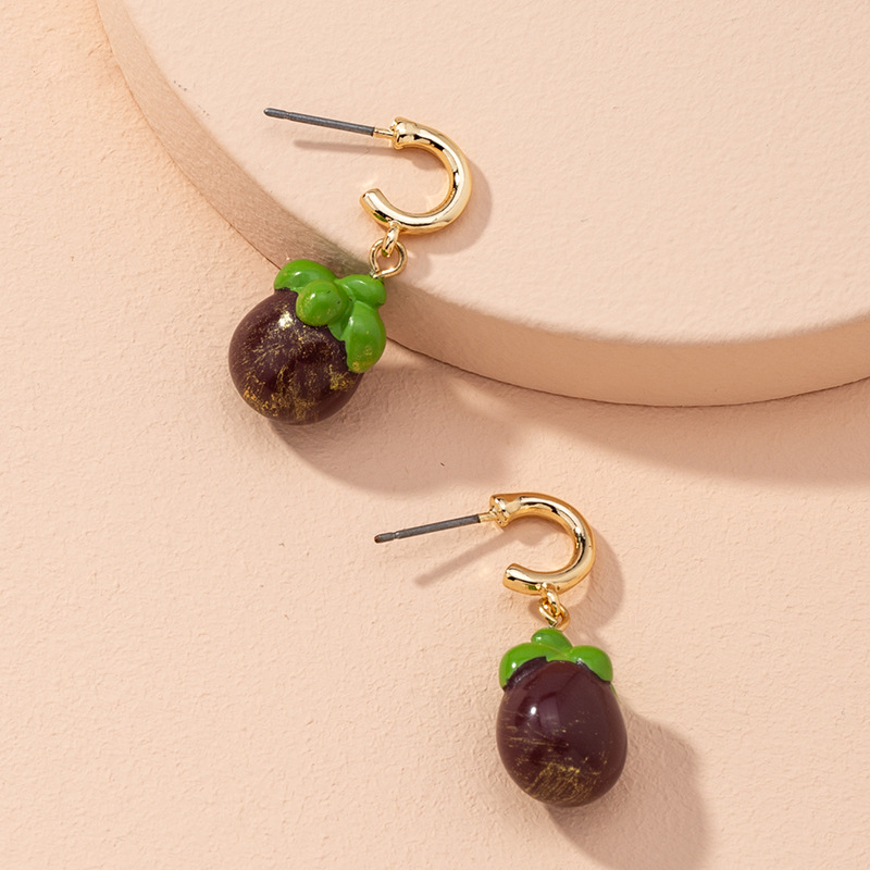 Product information:Style: Korean style/Korean styleMaterial: plastic/resinType: EarringsStyle: Women'sStyle: FruitColor: E1364-purple grape, E1365-mangosteen, E1366-green spar, E1367-small flowerPackage:Plastic earrings X1 pair