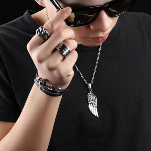 European and American trendy male rock fashion angel wings pendant