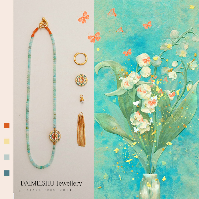 Color: necklace, earrings