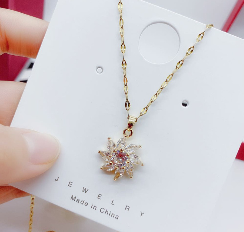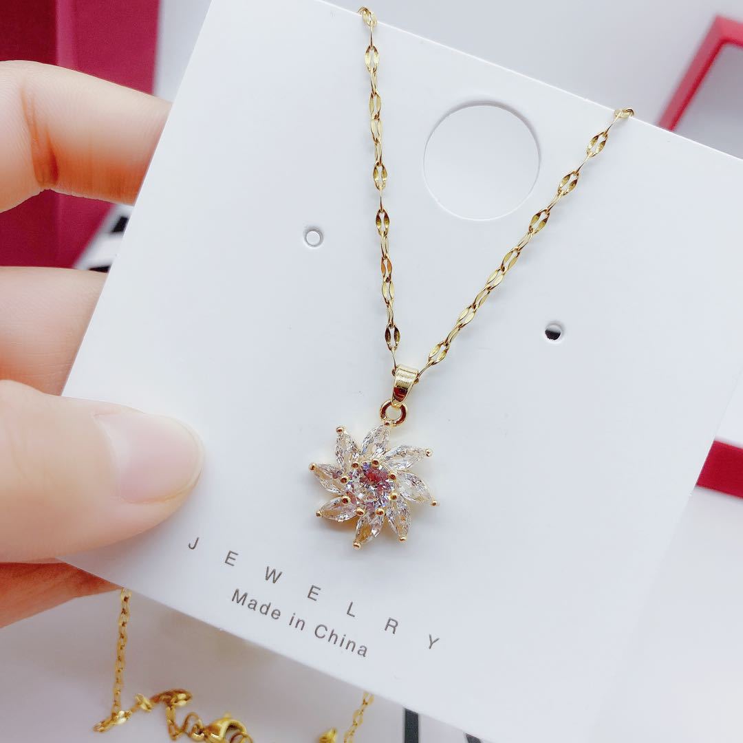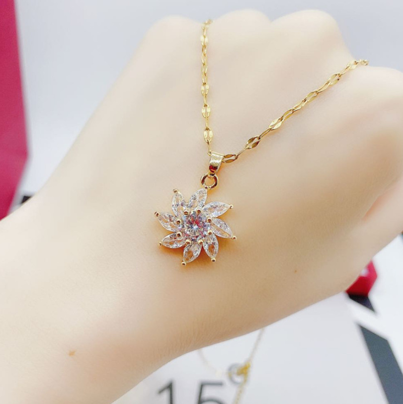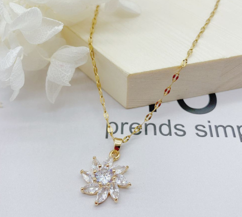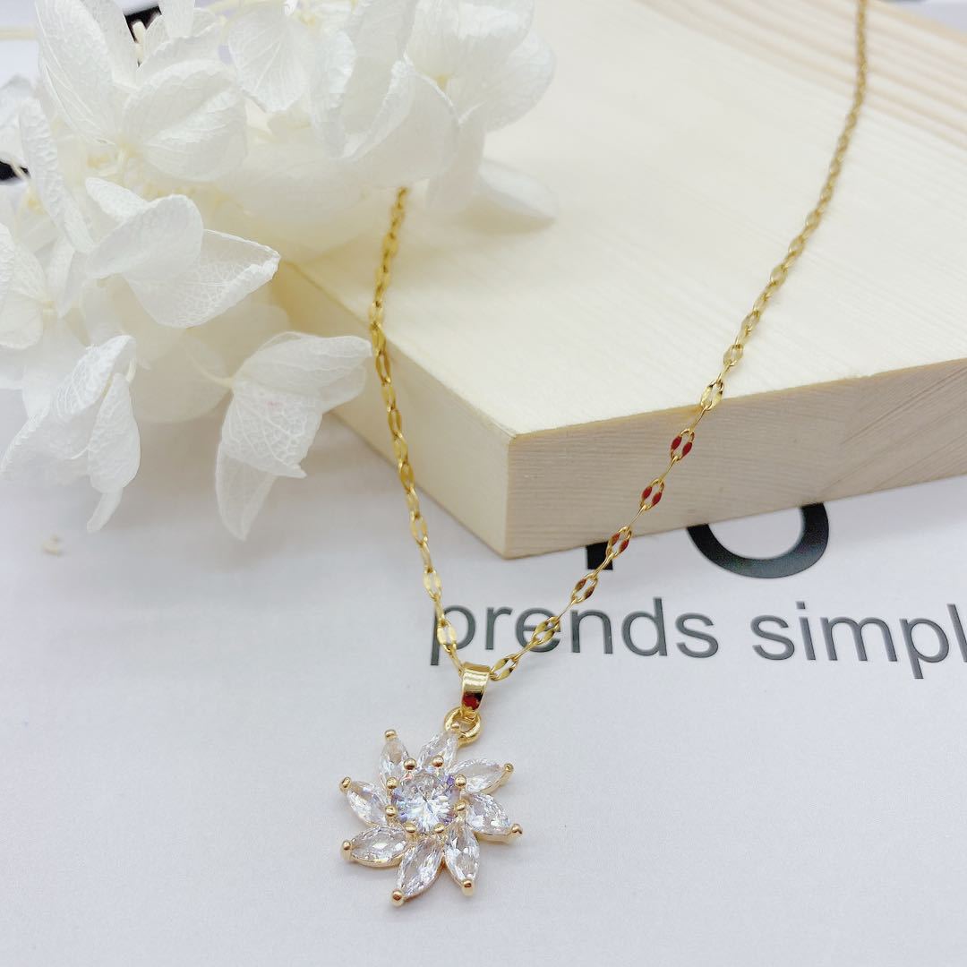 Fashion White Crystal Sun Flower Pendant necklace