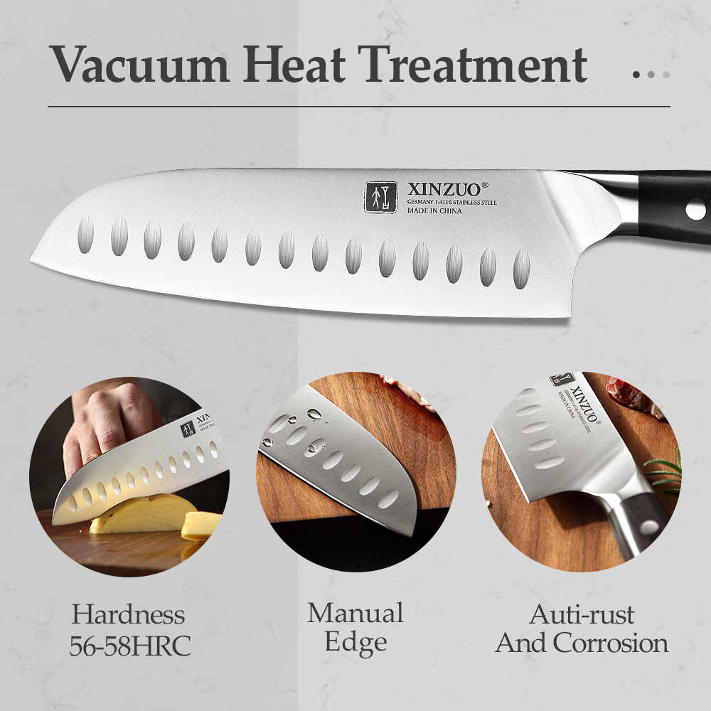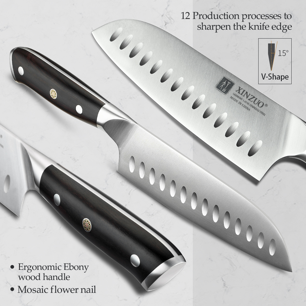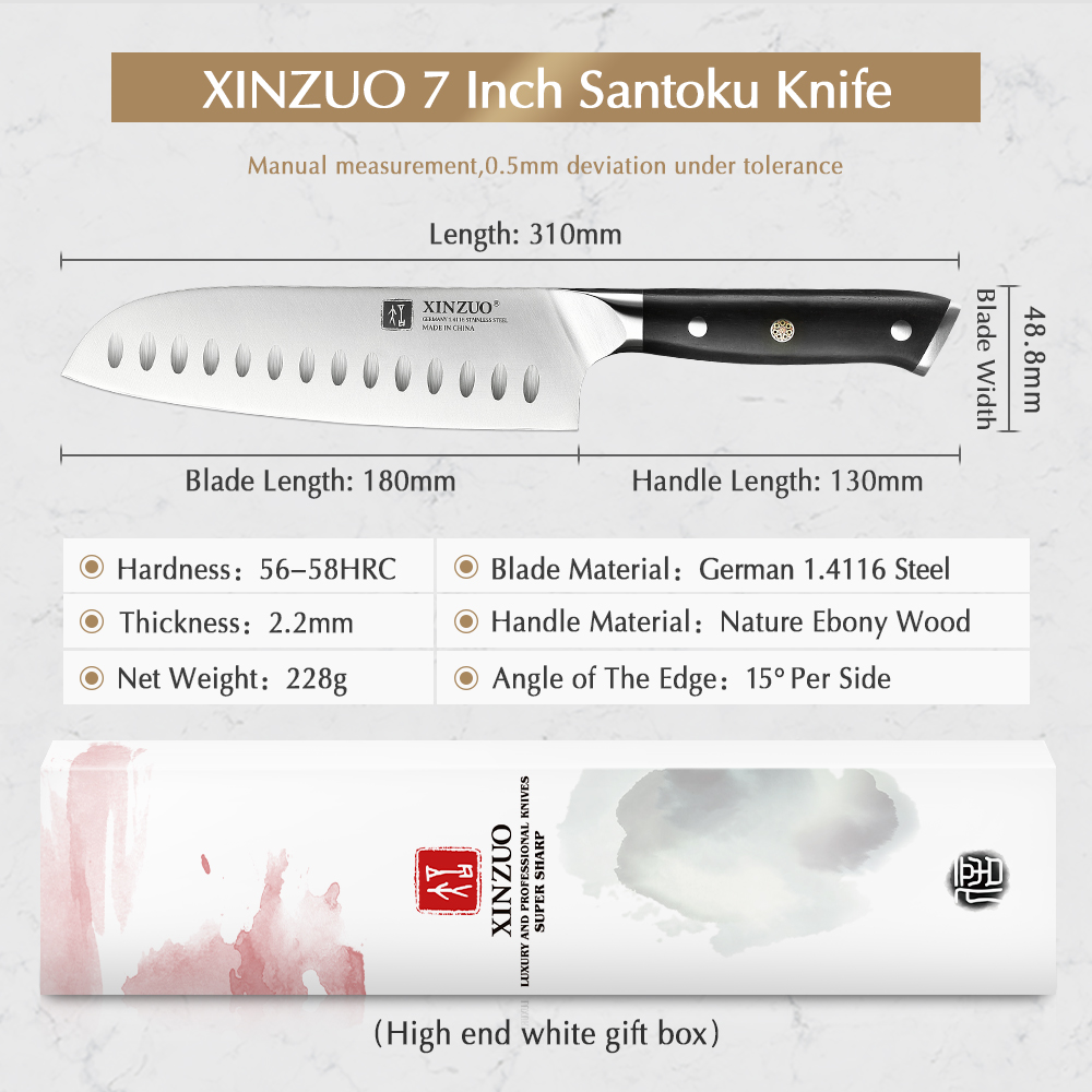 Hardness: 56-58HRCBlade thickness: 2.2MMBlade material: German 1.4116 molybdenum vanadium steelHandle material: natural ebony woodBlade angle: Japanese style single side 15°