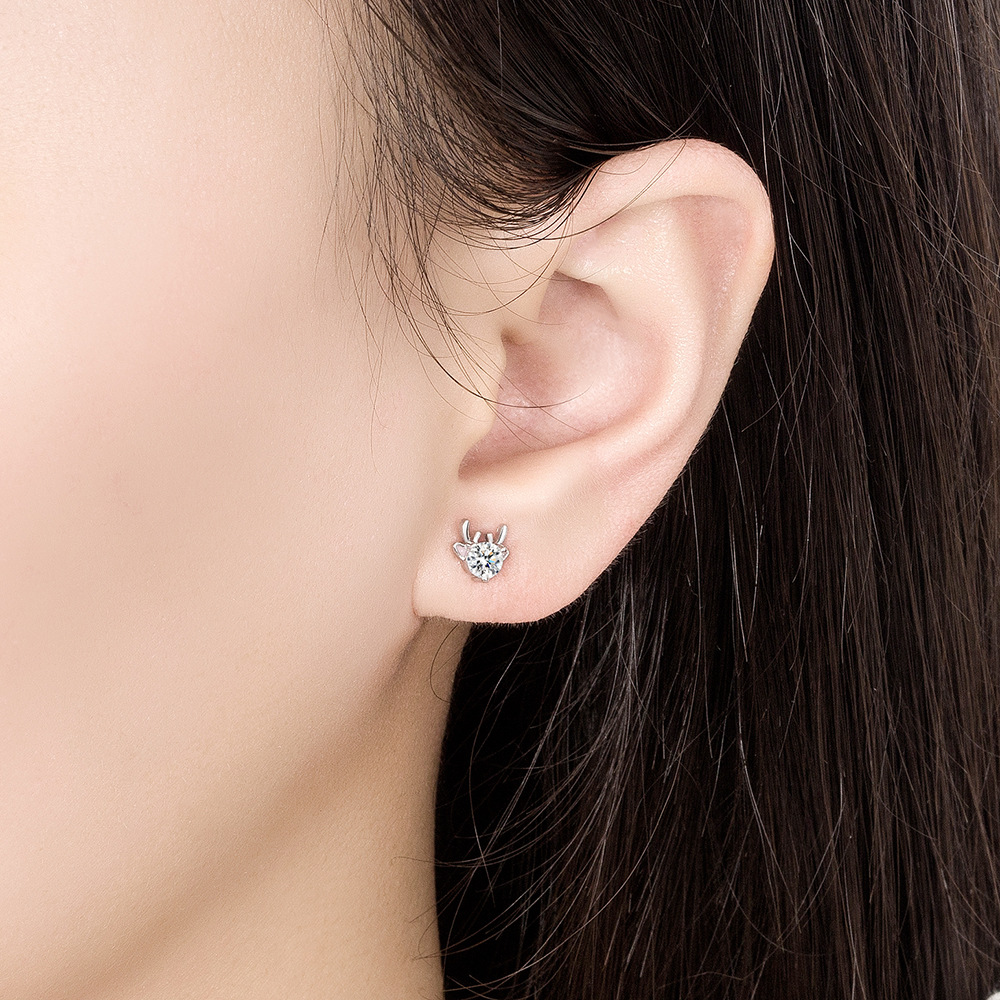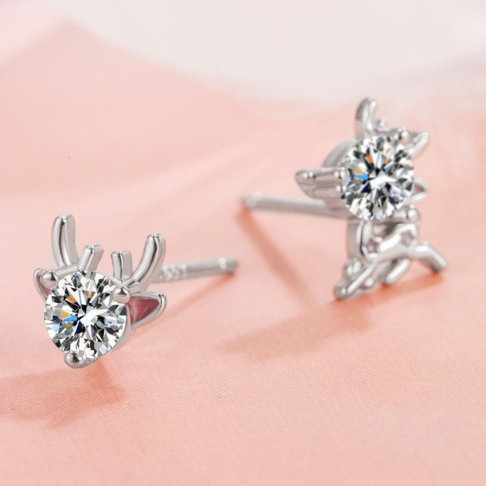 Silver Needle Deer Earrings Christmas Jewelry