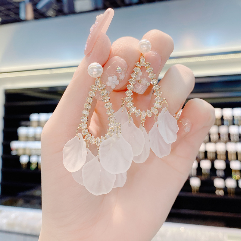 Product information :Material: copper plated gold +925 silver needleModeling: water drop shapeColor: zircon water drop petals (thickened with real gold)Size Information: