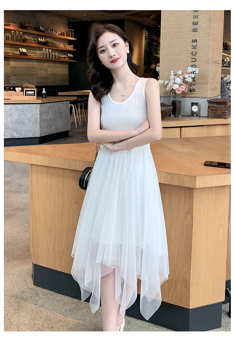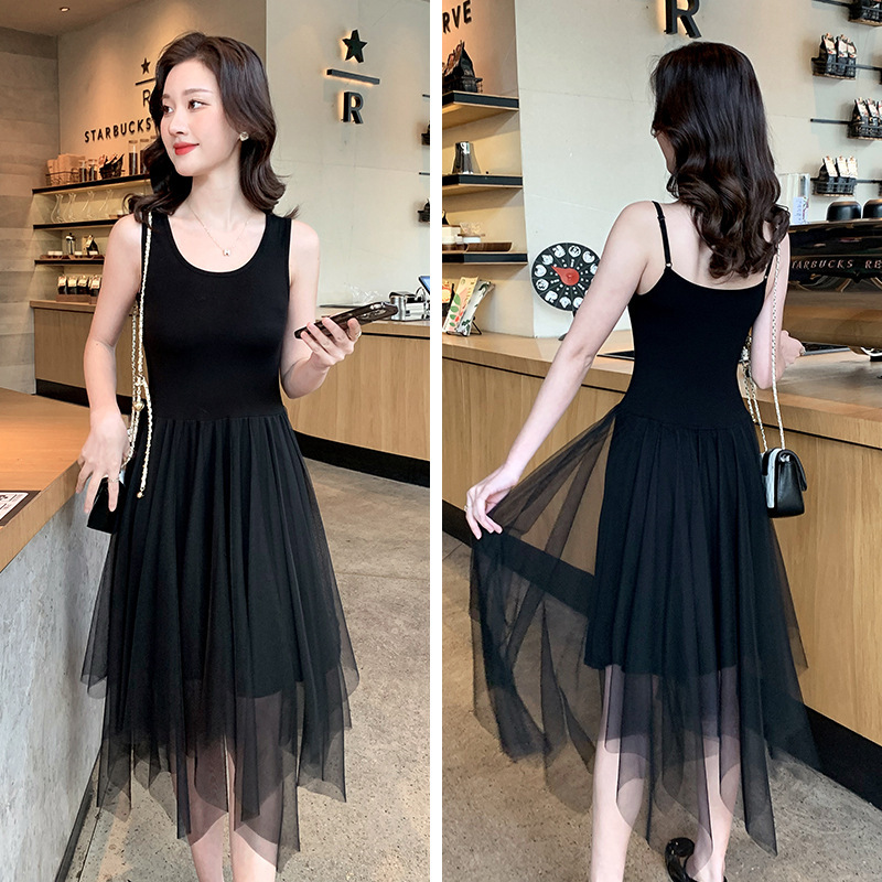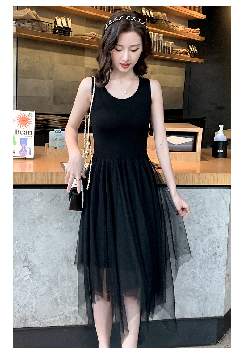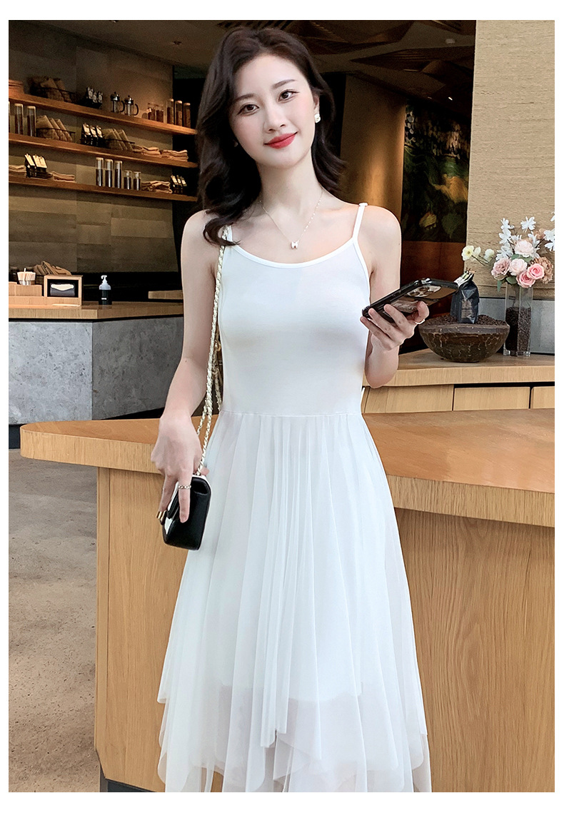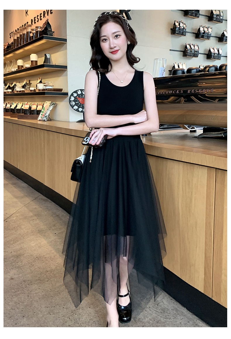 Color: black camisole dress, white overskirt, black tank dress, white tank dress