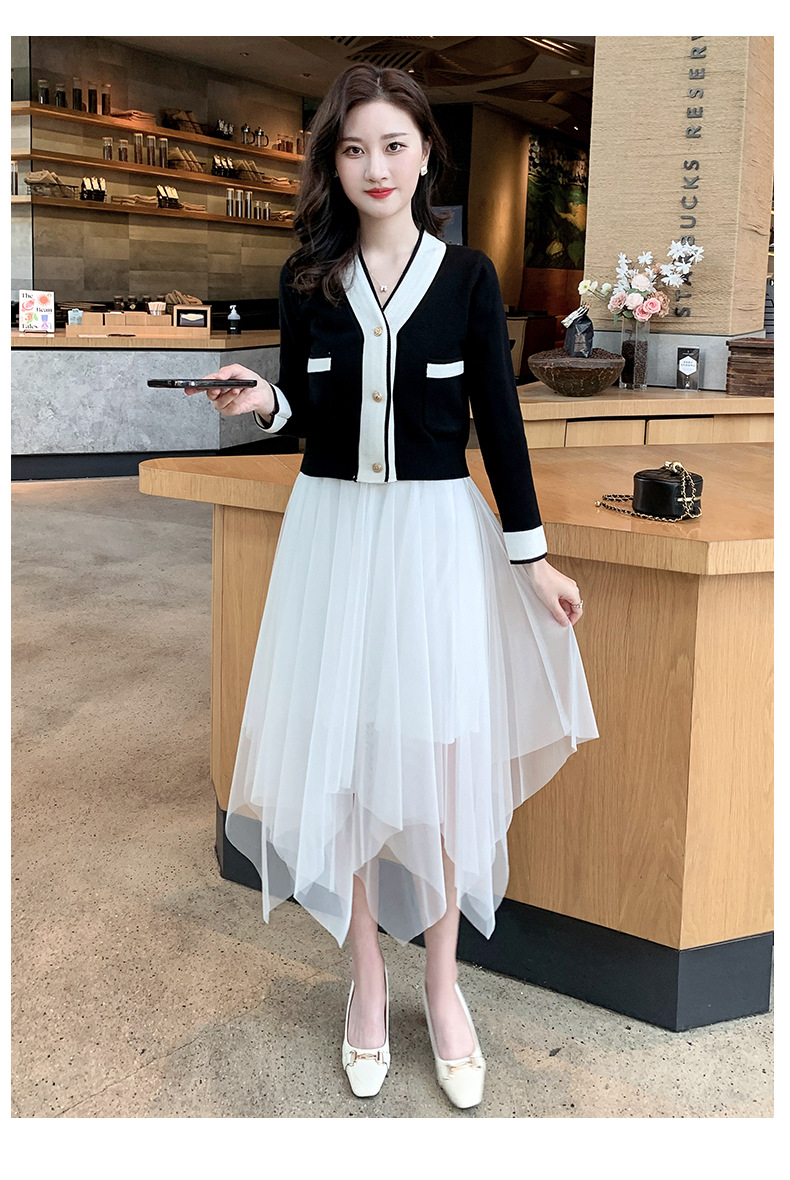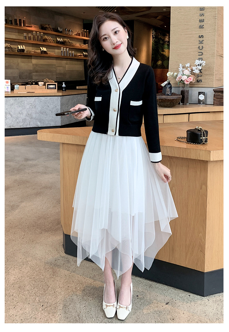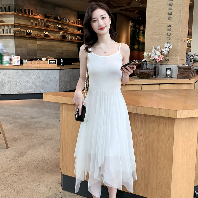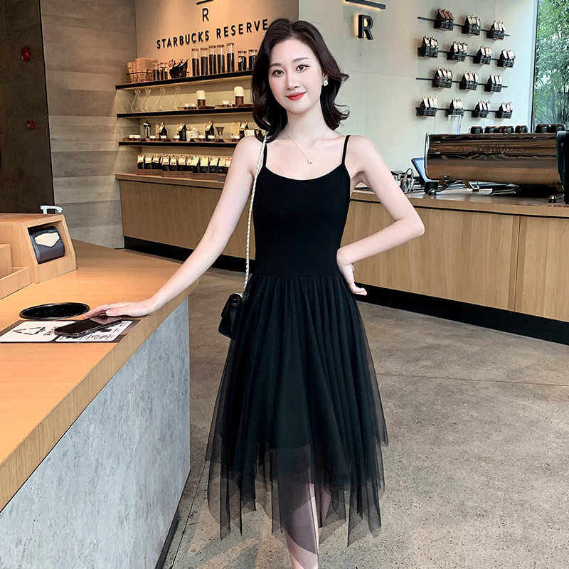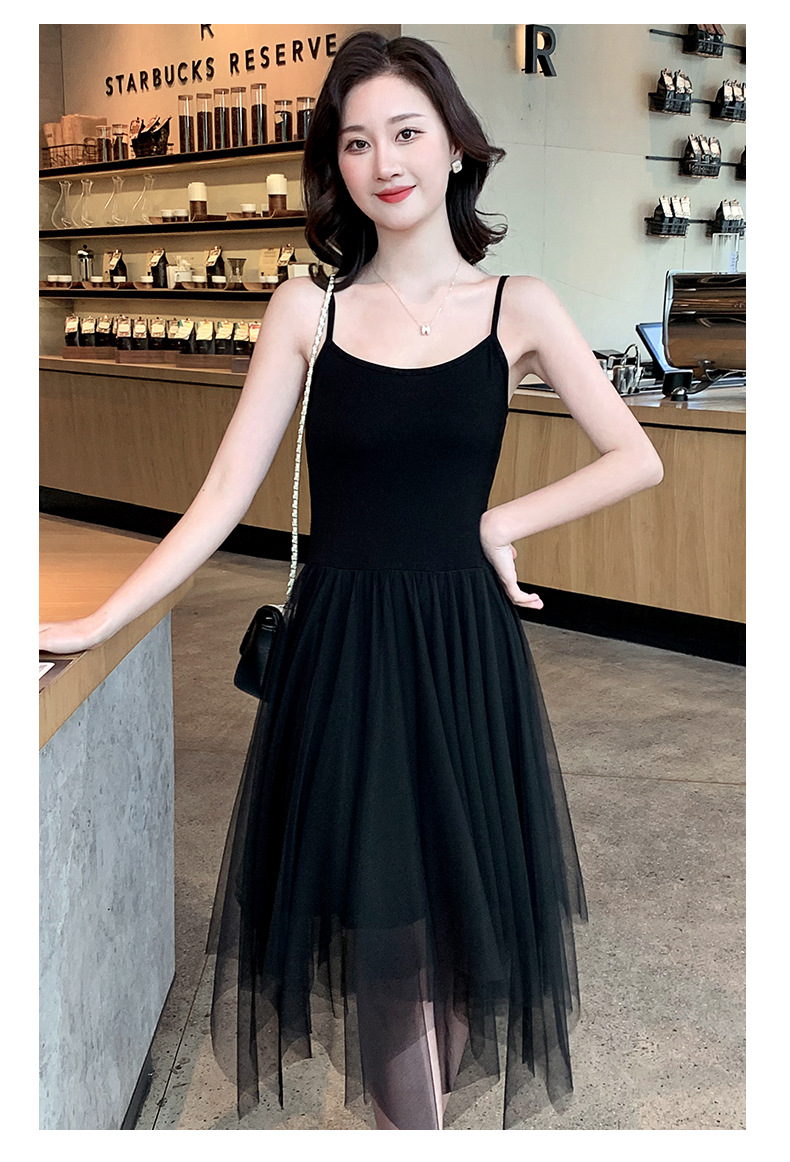 Color: black camisole dress, white overskirt, black tank dress, white tank dress