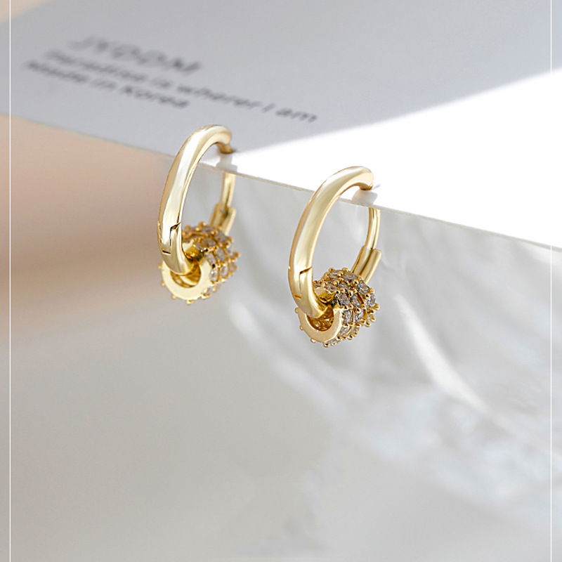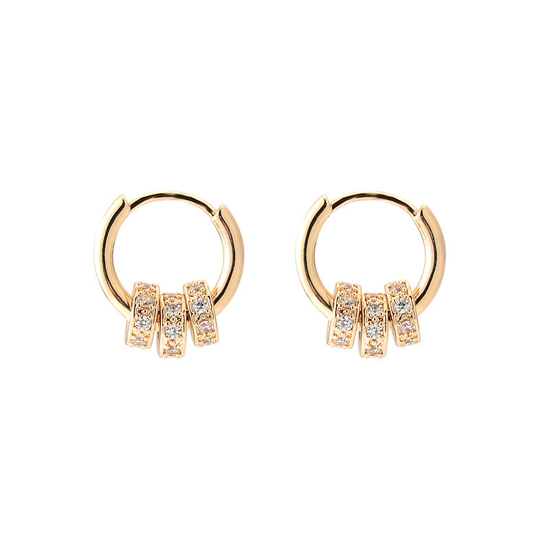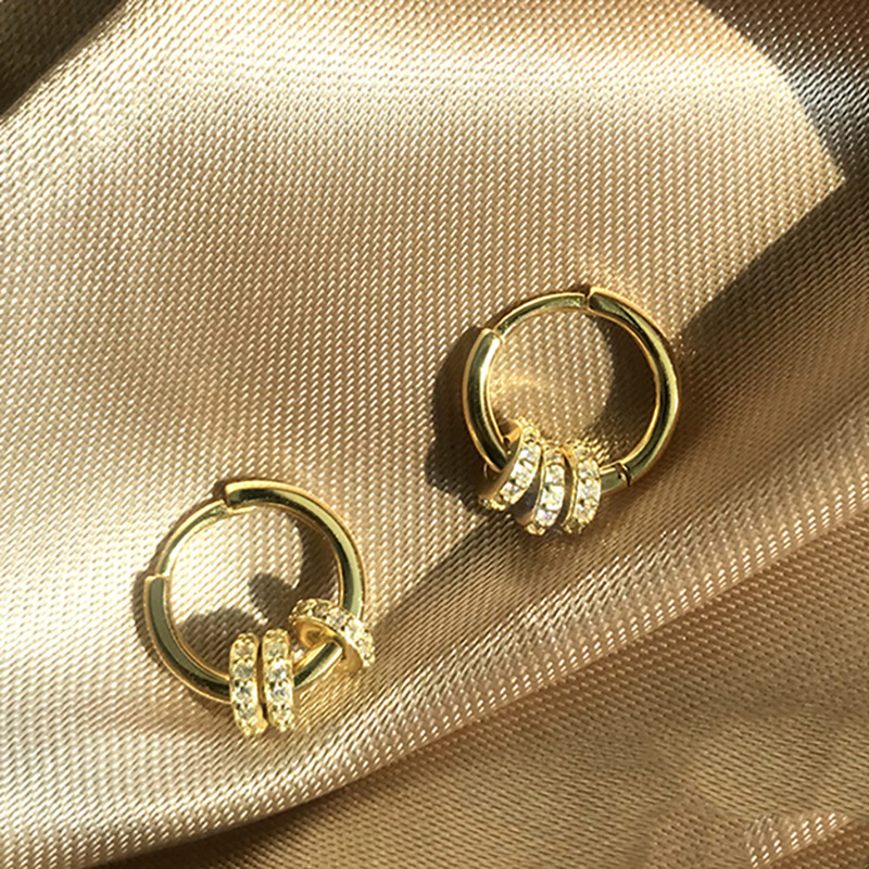 Silver Needle Three Circle Zirconium Retro Earrings