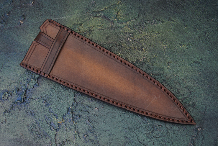 Leather case: hand-stitched carved vegetable tanned leather