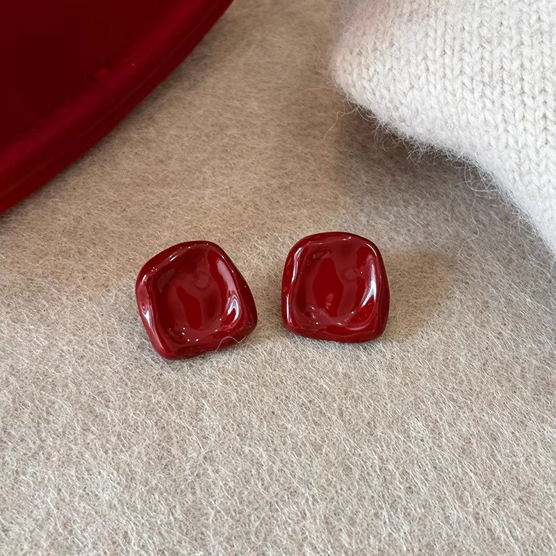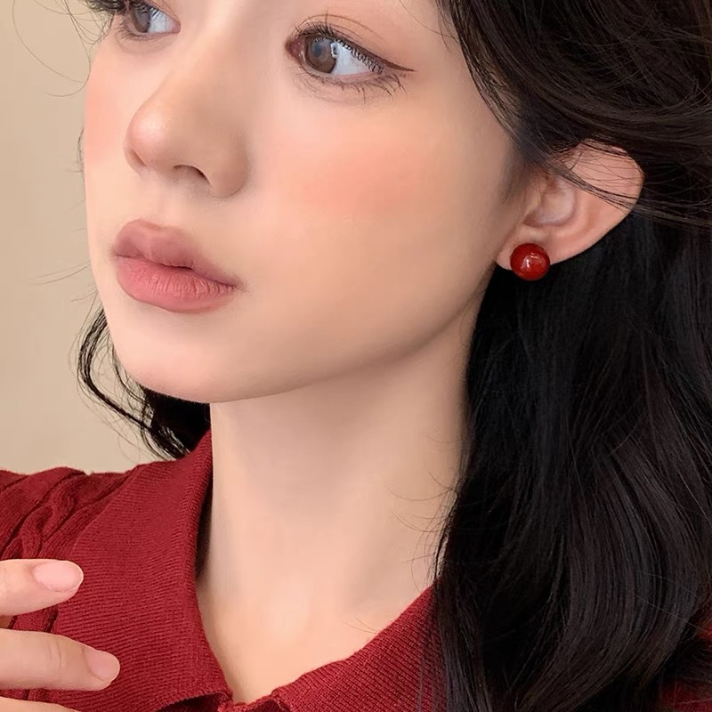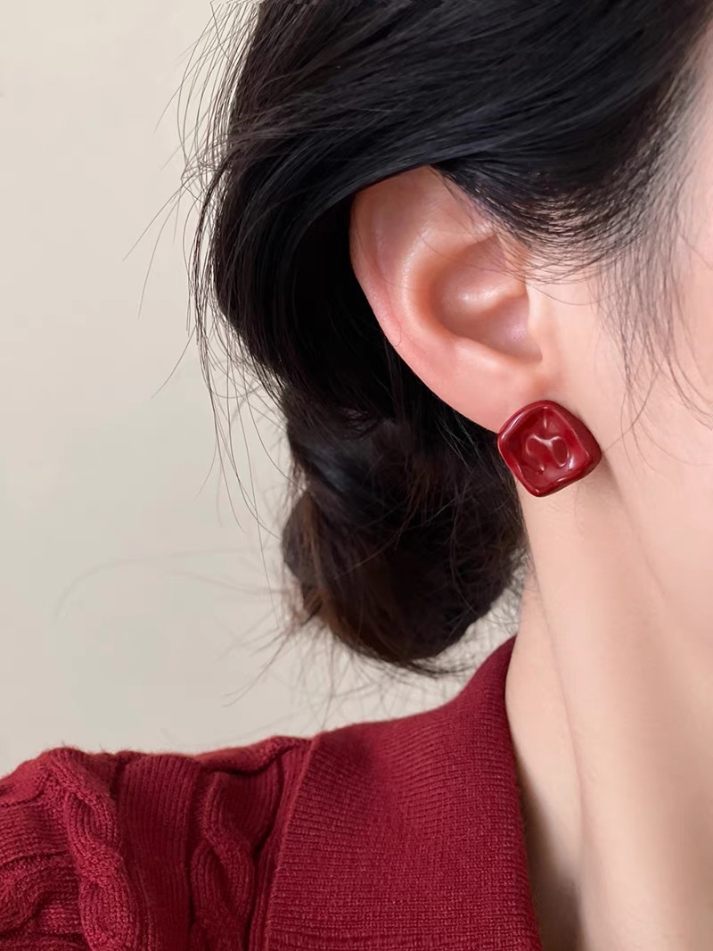 Product information:Color: A1996 red, A2039 red 12mm,A2081 wine red Applicable population: Female Material: Copper Shape: Geometry Popular elements: Love/heart