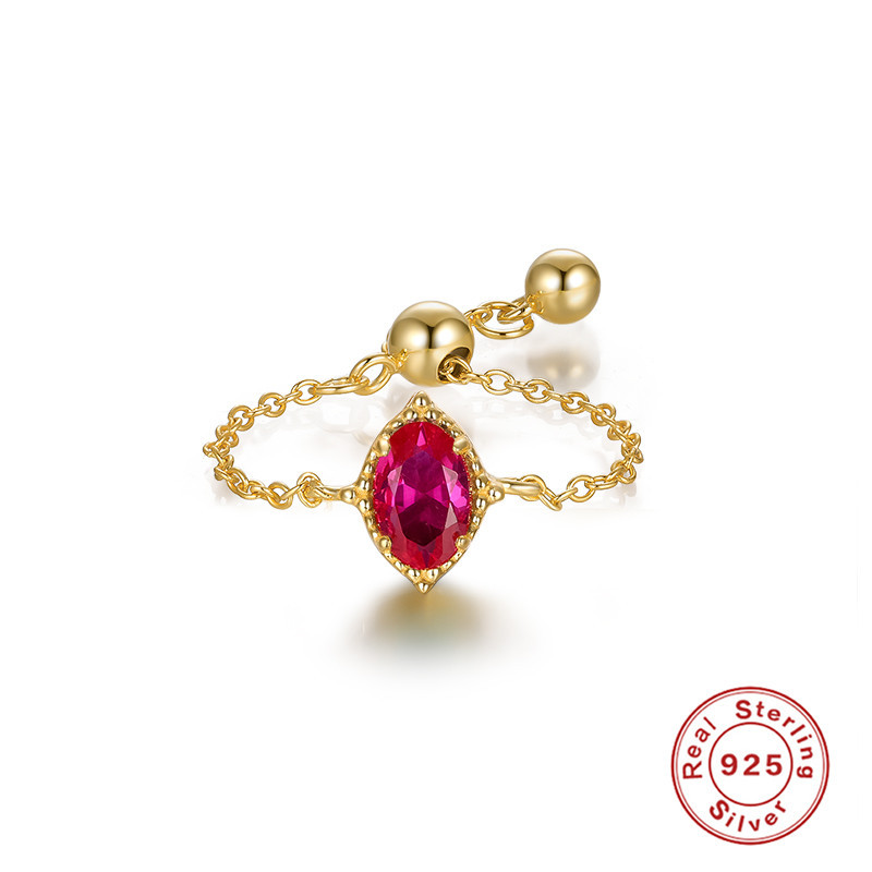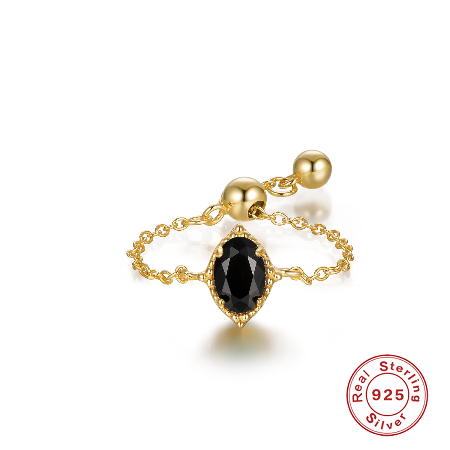 Sterling Silver Adjustable Chain Diamond-studded Ring