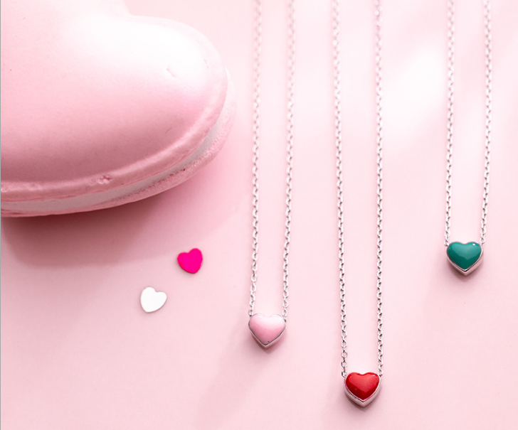 Color: s925 silver necklace-red and black, s925 silver necklace-green, s925 silver necklace-pink