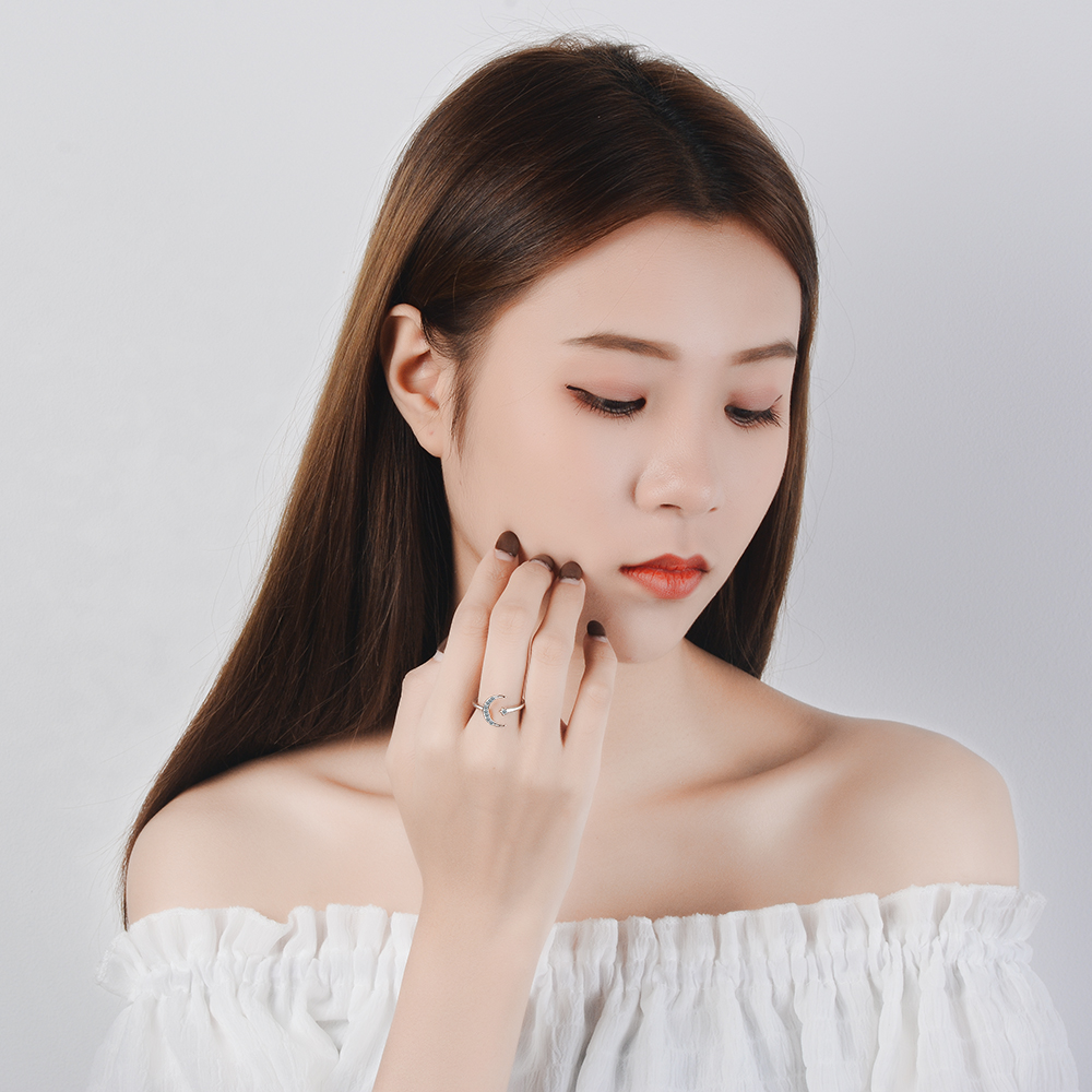 NEHZY 925 Sterling Silver New Woman Fashion Jewelry High Quality Crystal Zircon Star Moon Ring Size Adjustable Ring