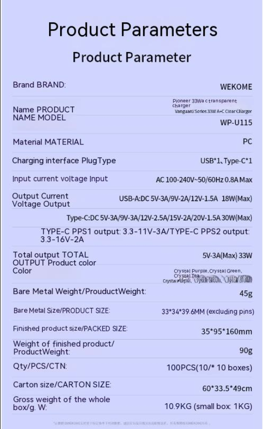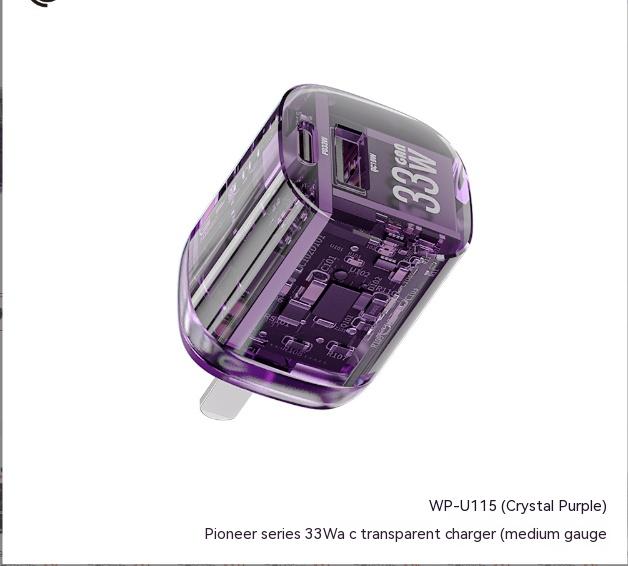 GaN empowers black technology nitrogen edge, 33Wa + c nitride fast charger, WP-U115 pioneer 33Wa + c transparent charger.