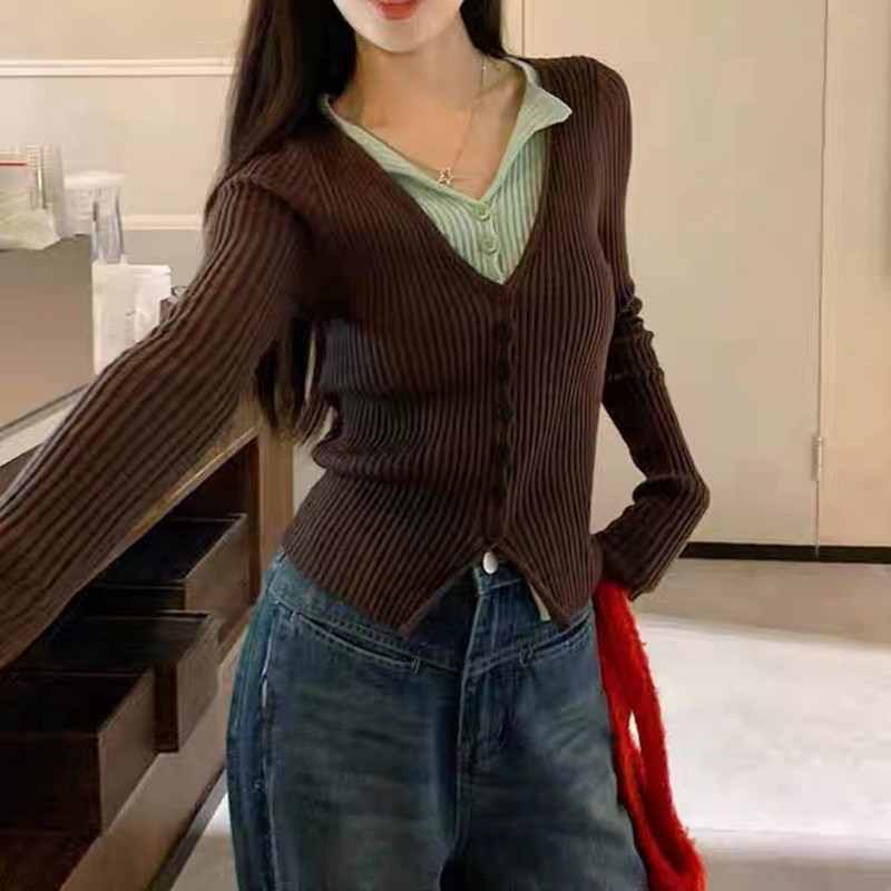 Contrast Color Knitwear Female Vintage Bottoming Shirt