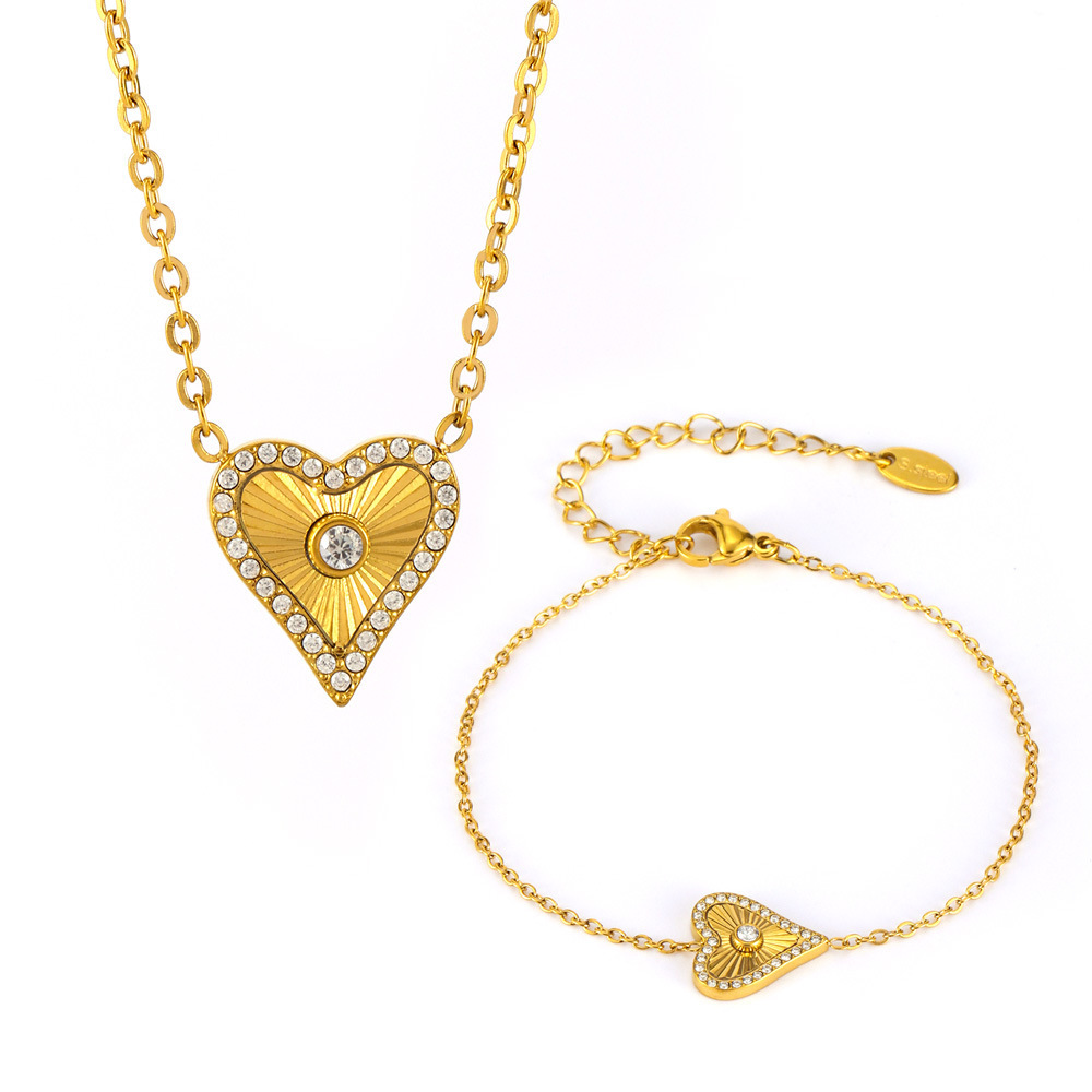Color: TXP210-gold love heart necklace, TXP210-steel love heart necklace, TXE210-gold heart bracelet, TXE210-steel heart bracelet