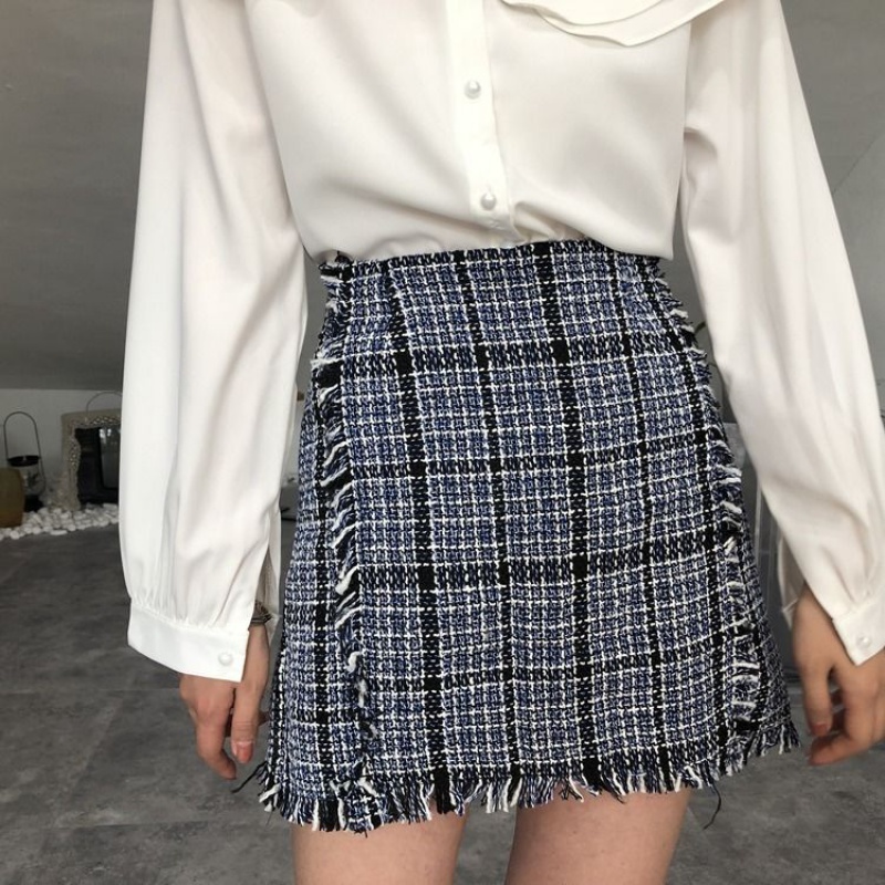 Pattern: lattice Waist type: high waist Skirt length: short skirt